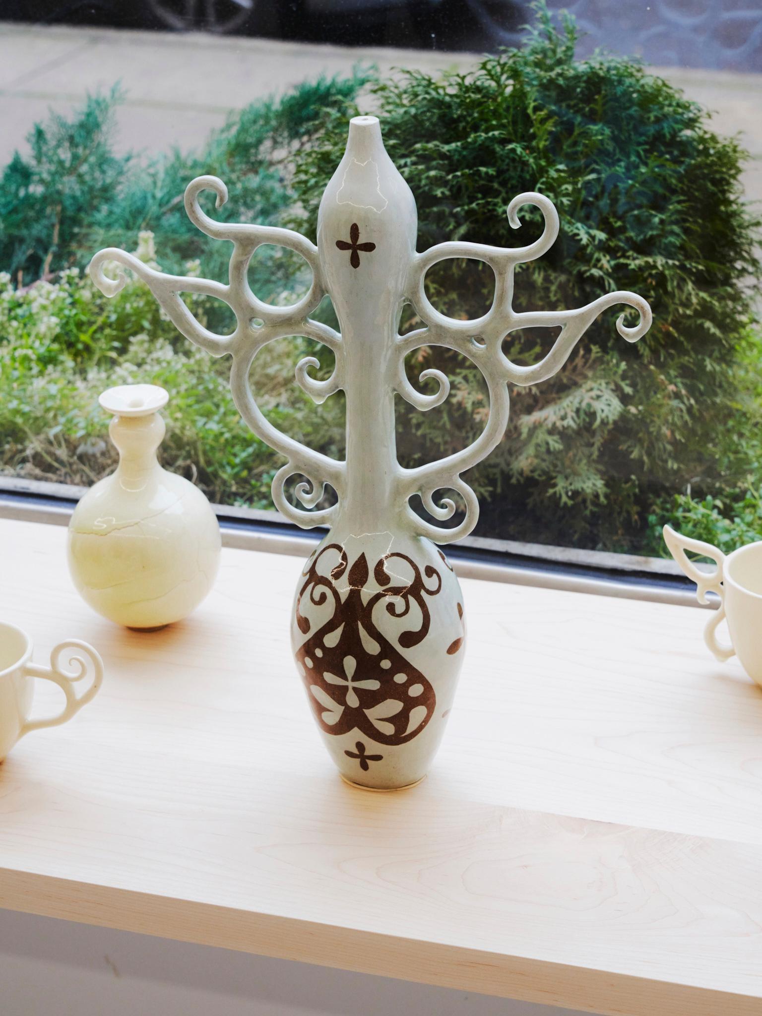 Olivia Pi’ilani Whittier ( b.1999) is an artist based in Columbus, Ohio. She endeavors to reveal the intricate relationship between hands and the earth. Employing clay as her medium, she creates vessels that delve into ancestral and ceremonial storytelling traditions, touching upon themes such as fantasy, romanticism, grief, generational trauma, and the interconnectedness of nature and the human experience. Whittier is pursuing a BA. in Psychology and Minor in Ceramics at The Ohio State University.