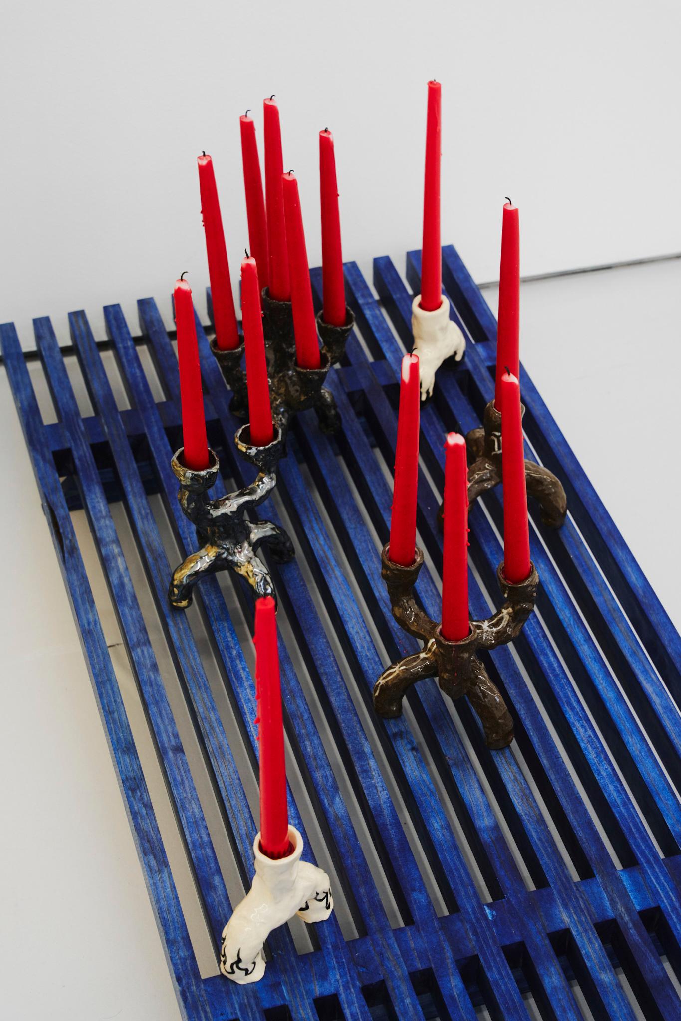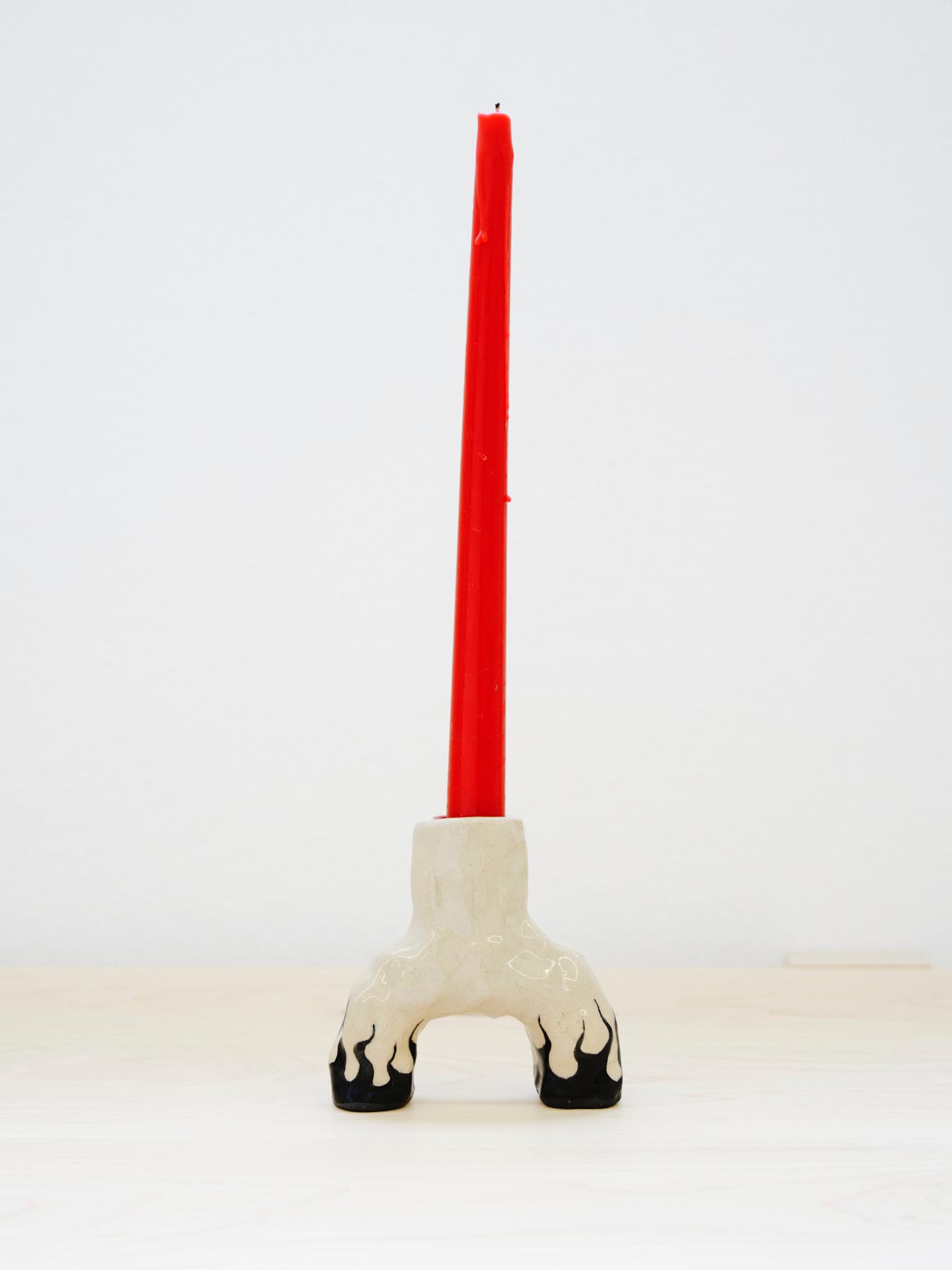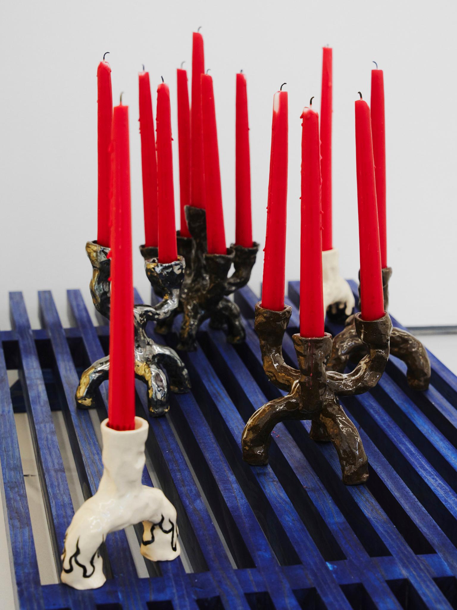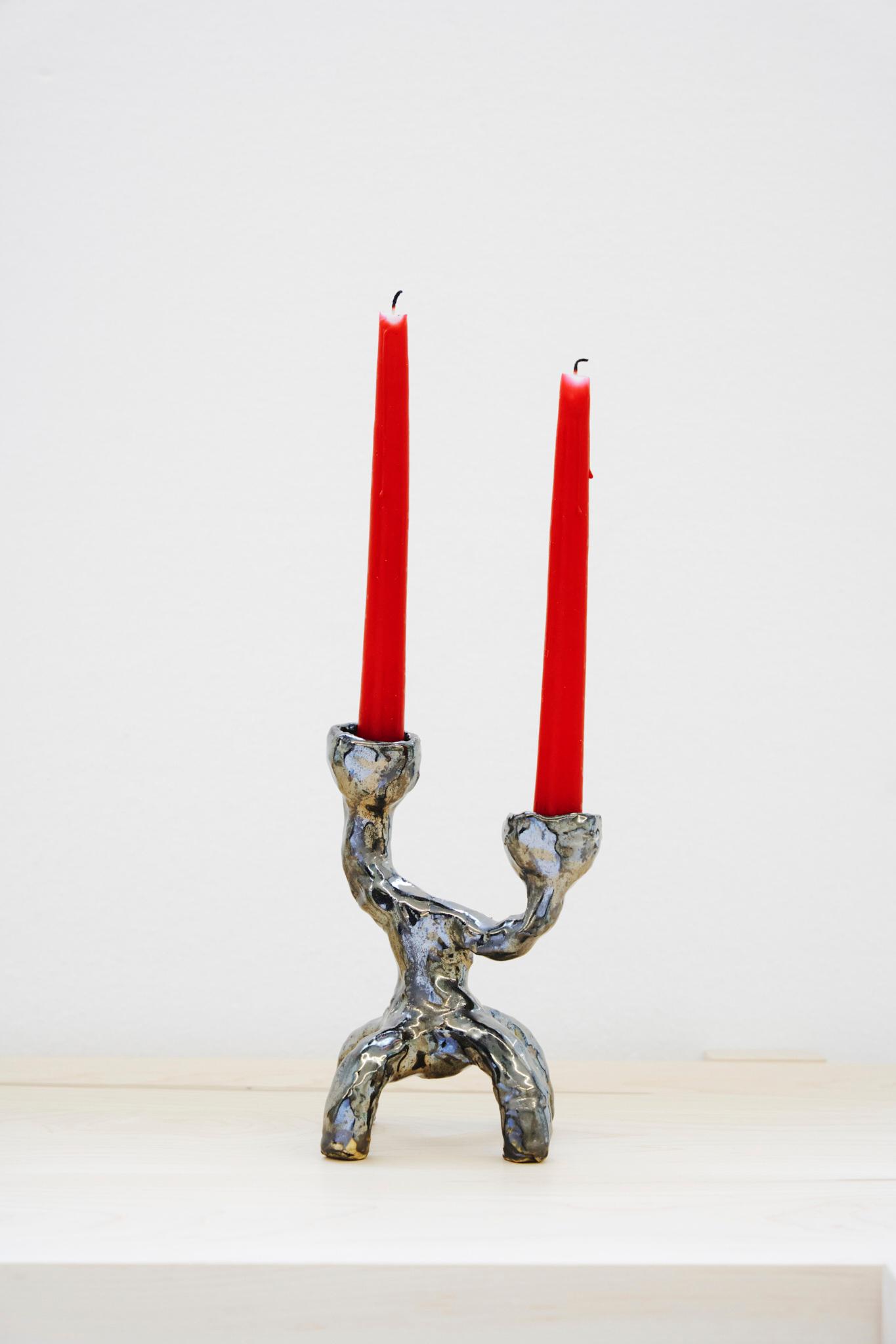 Chloe Seibert (b. 1989, New York) lives and works in New York. Recent solo and two person exhibitions include Mickey (New York, NY), ASHES/ASHES (New York), Chris Andrews Gallery (Montréal), and No Place Gallery (Columbus). Seibert works primarily in large scale, figurative sculpture. She has made this unique series of functional candelabras for No Place Gallery inspired by Peter Schumann’s Cheap Art Manifestos.