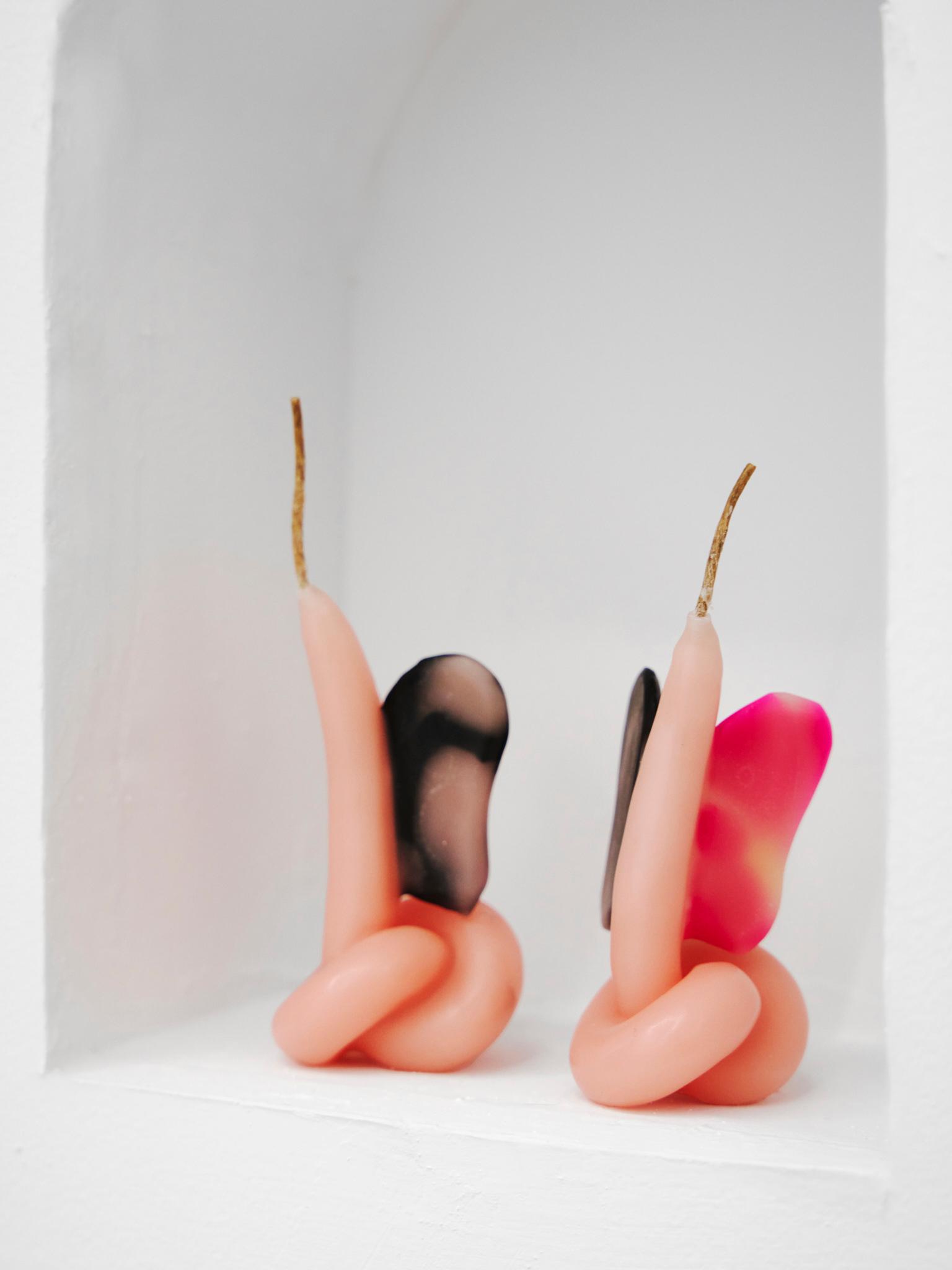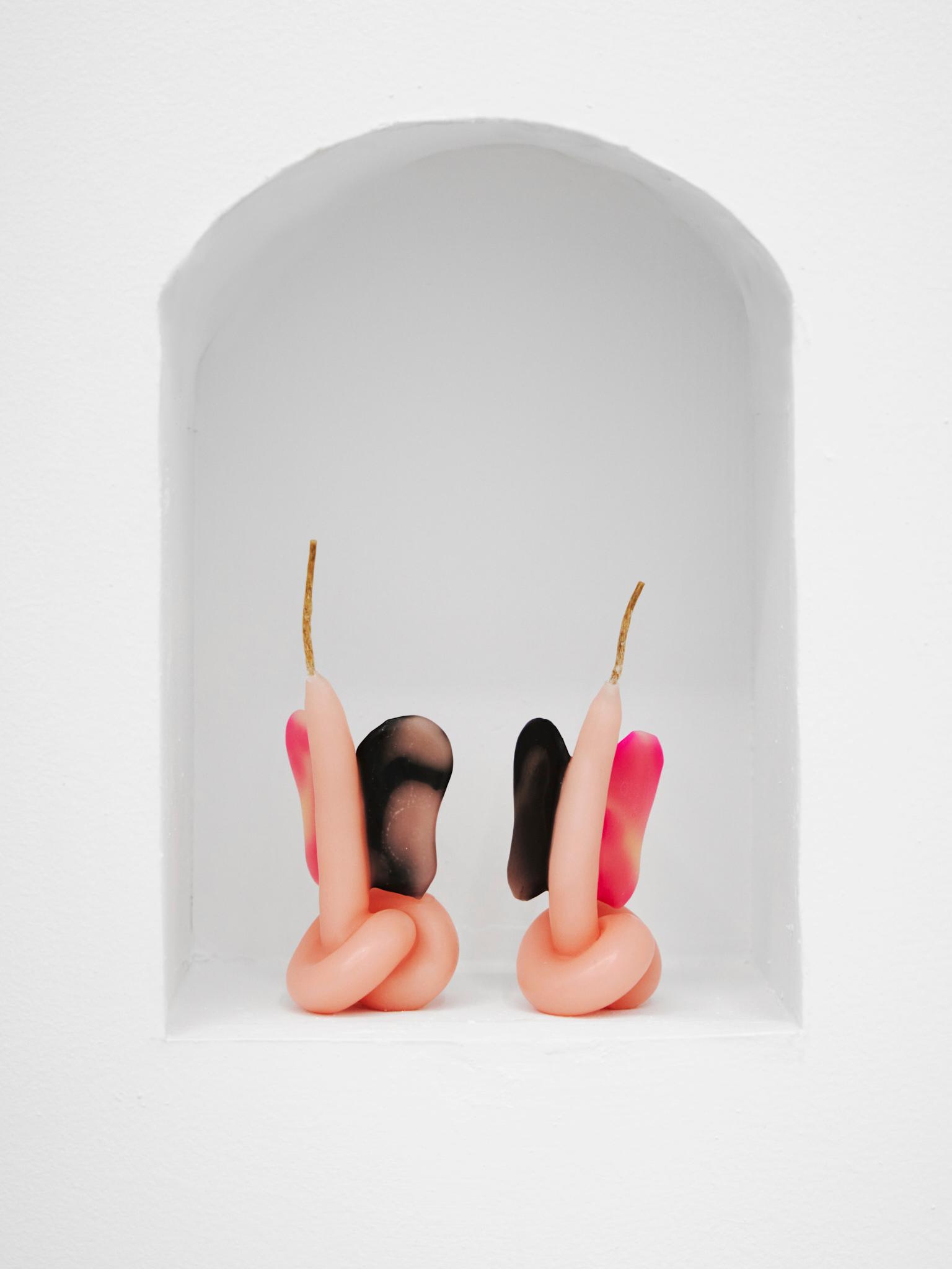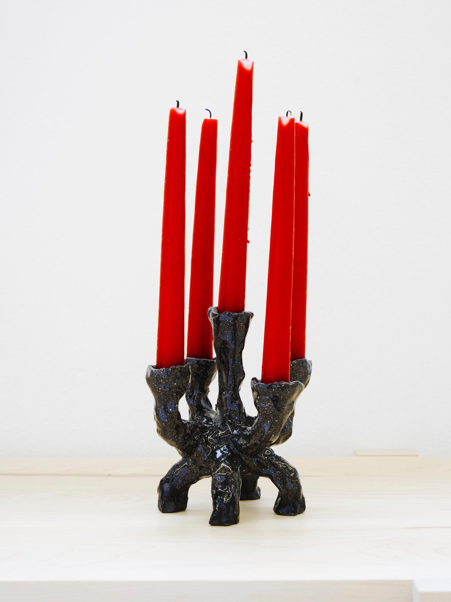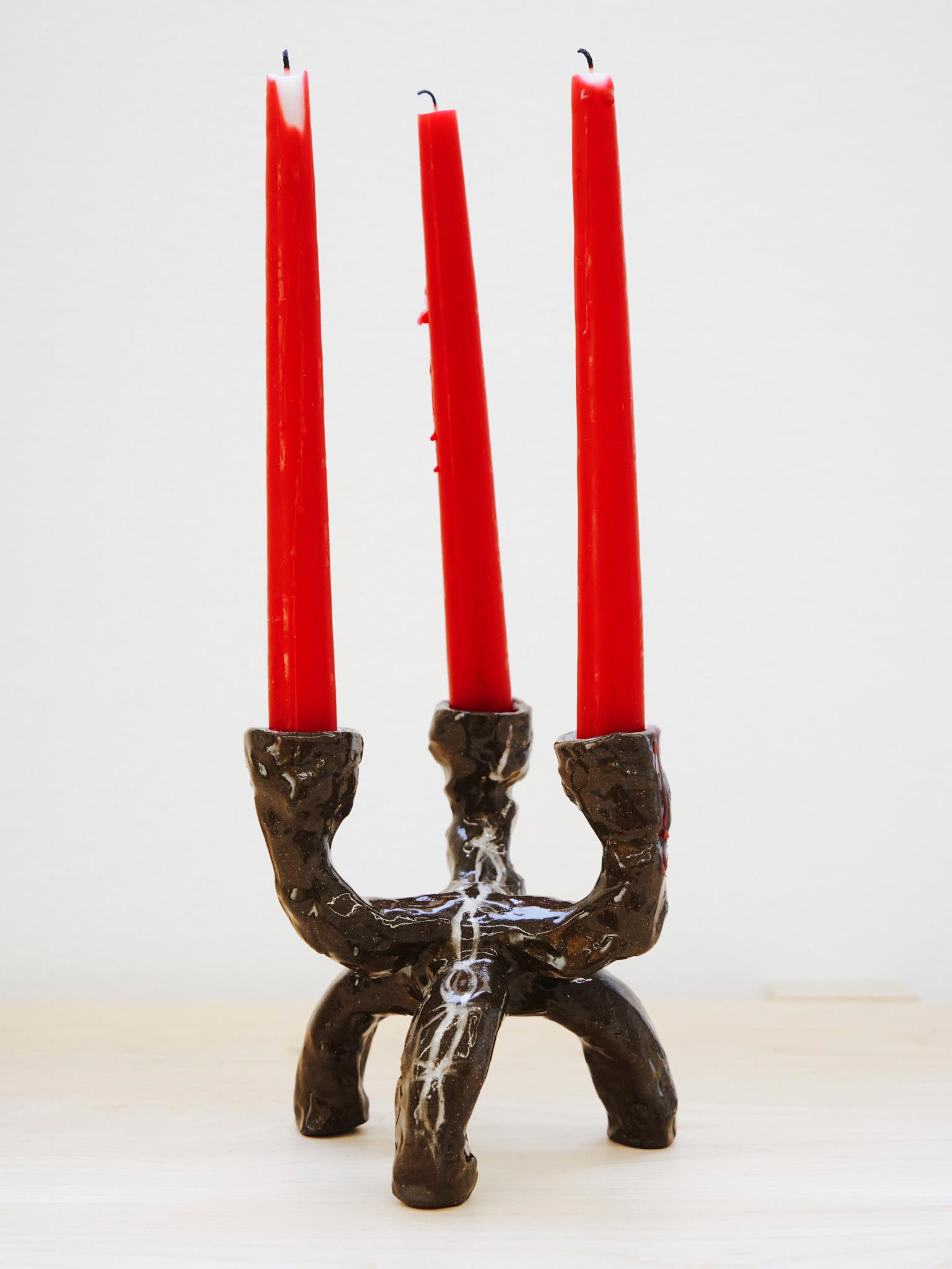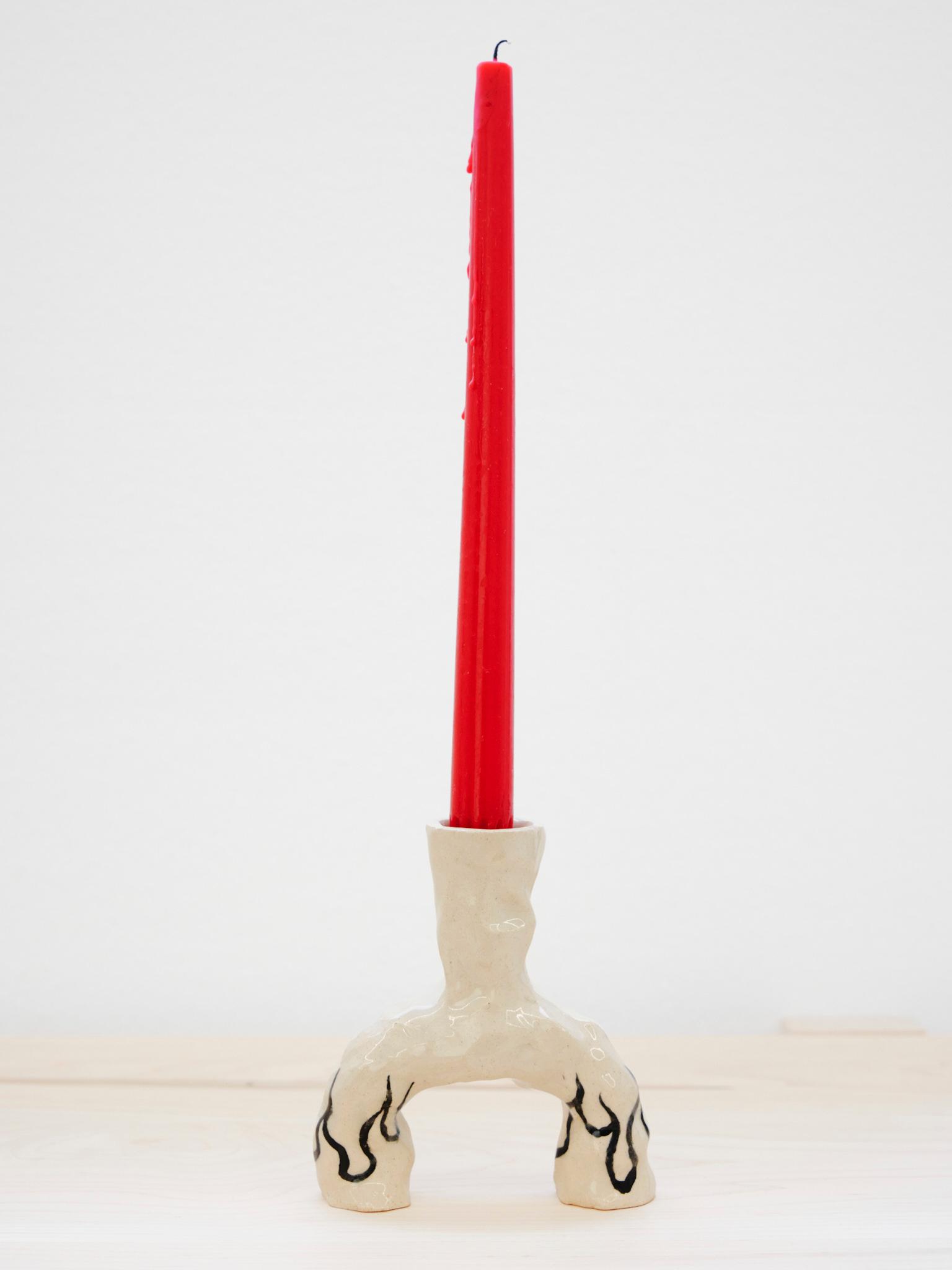 Chloe Seibert (b. 1989, New York) lives and works in New York. Recent solo and two person exhibitions include Mickey (New York, NY), ASHES/ASHES (New York), Chris Andrews Gallery (Montréal), and No Place Gallery (Columbus). Seibert works primarily in large scale, figurative sculpture. She has made this unique series of functional candelabras for No Place Gallery inspired by Peter Schumann’s Cheap Art Manifestos.