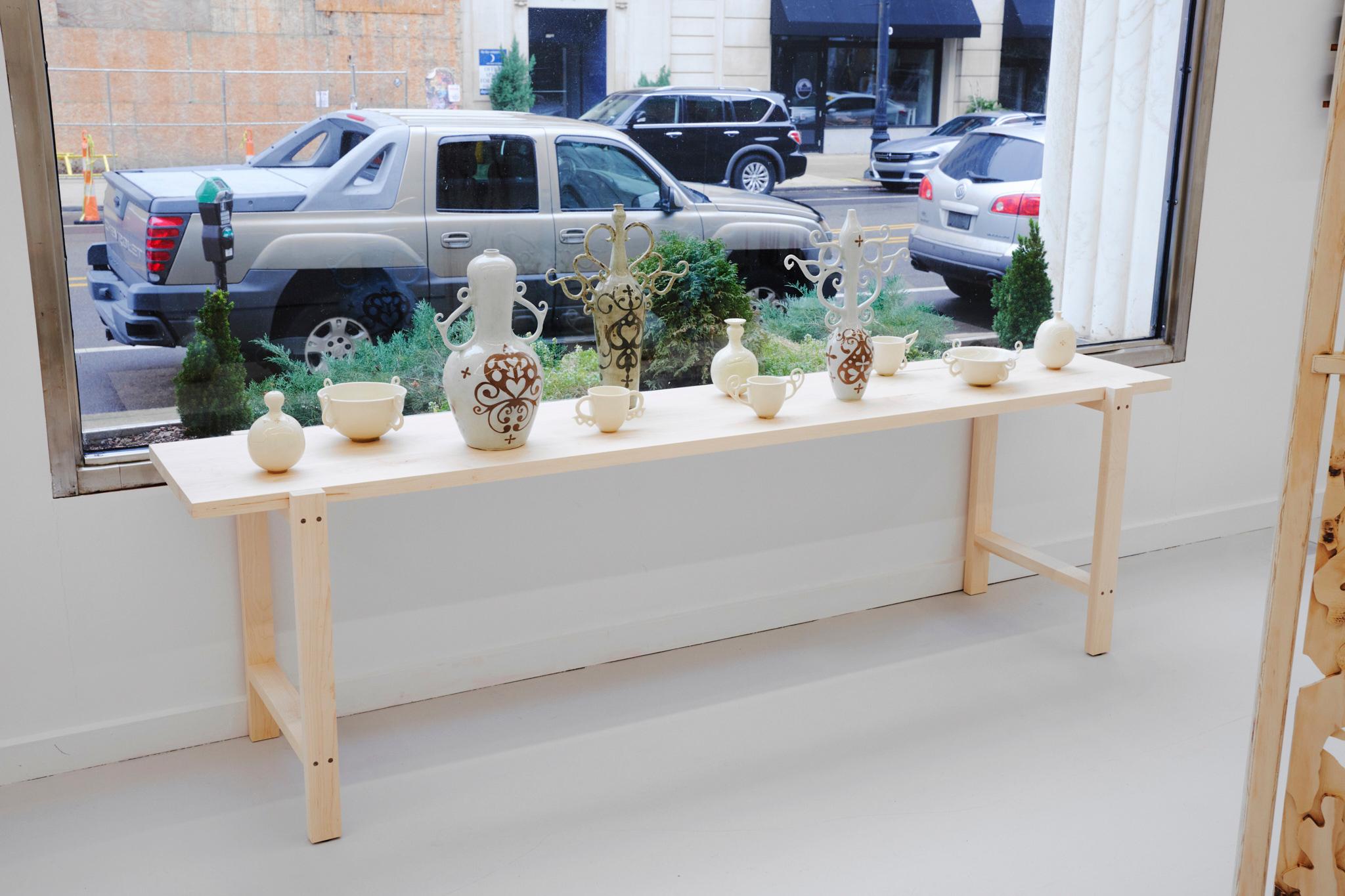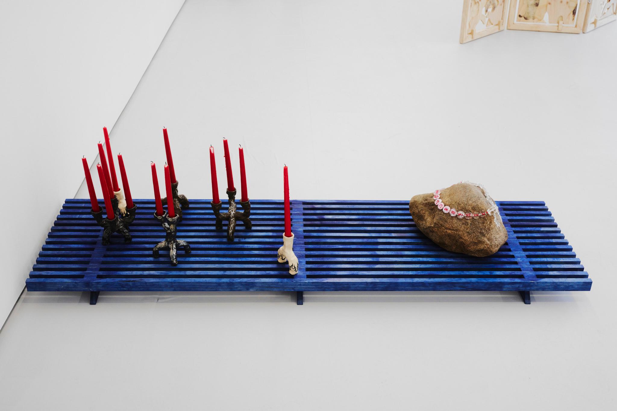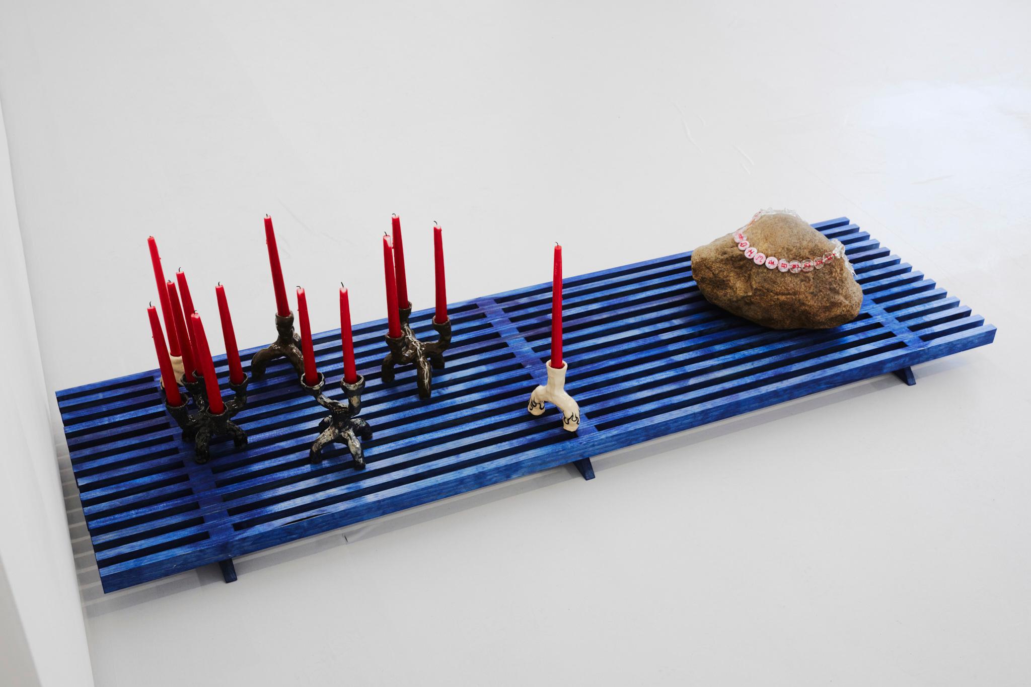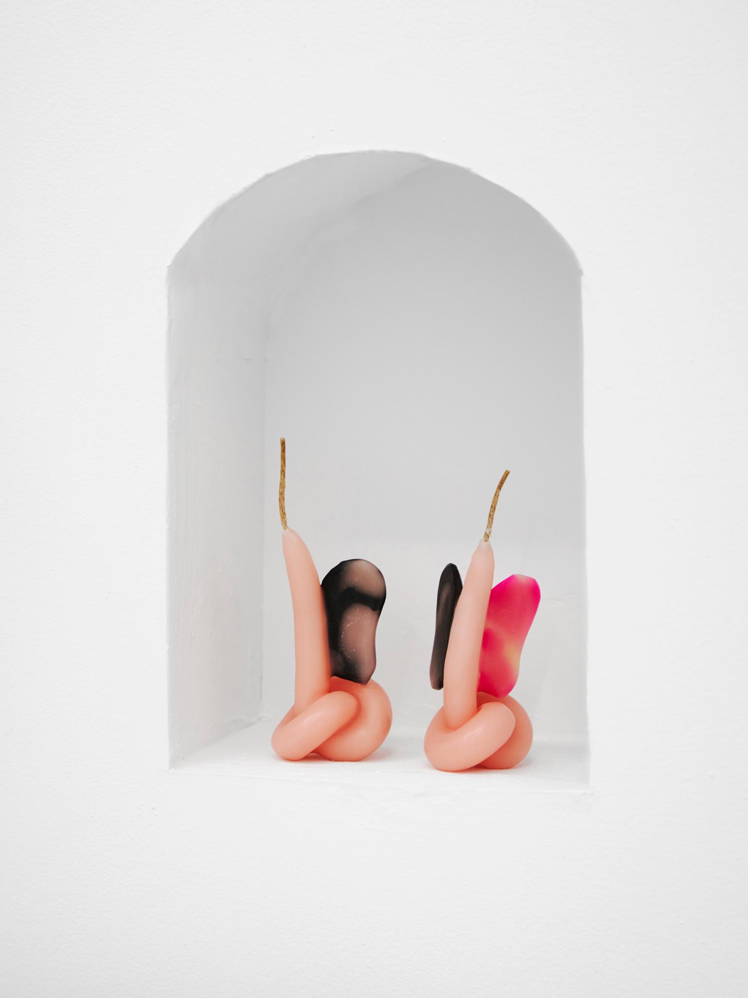 Chloe Seibert (b. 1989, New York) lives and works in New York. Recent solo and two person exhibitions include Mickey (New York, NY), ASHES/ASHES (New York), Chris Andrews Gallery (Montréal), and No Place Gallery (Columbus). Seibert works primarily in large scale, figurative sculpture. She has made this unique series of functional candelabras for No Place Gallery inspired by Peter Schumann’s Cheap Art Manifestos.