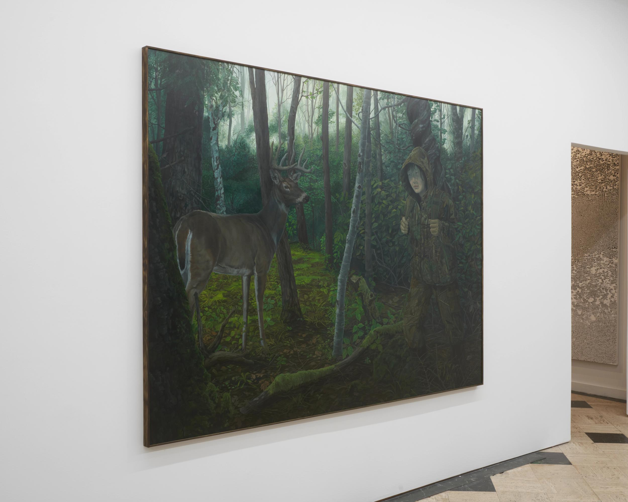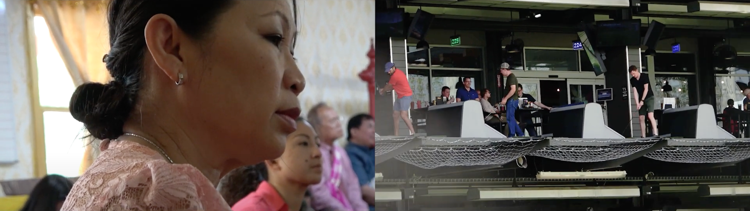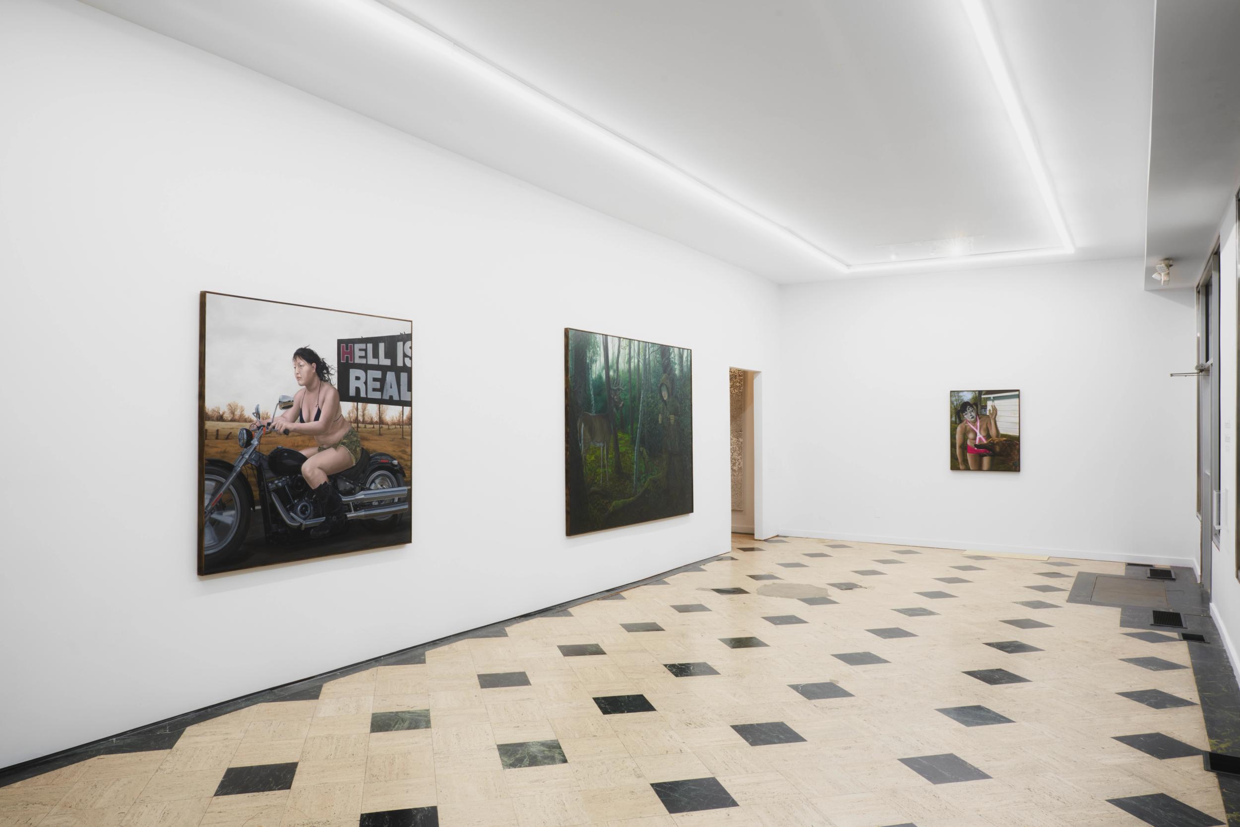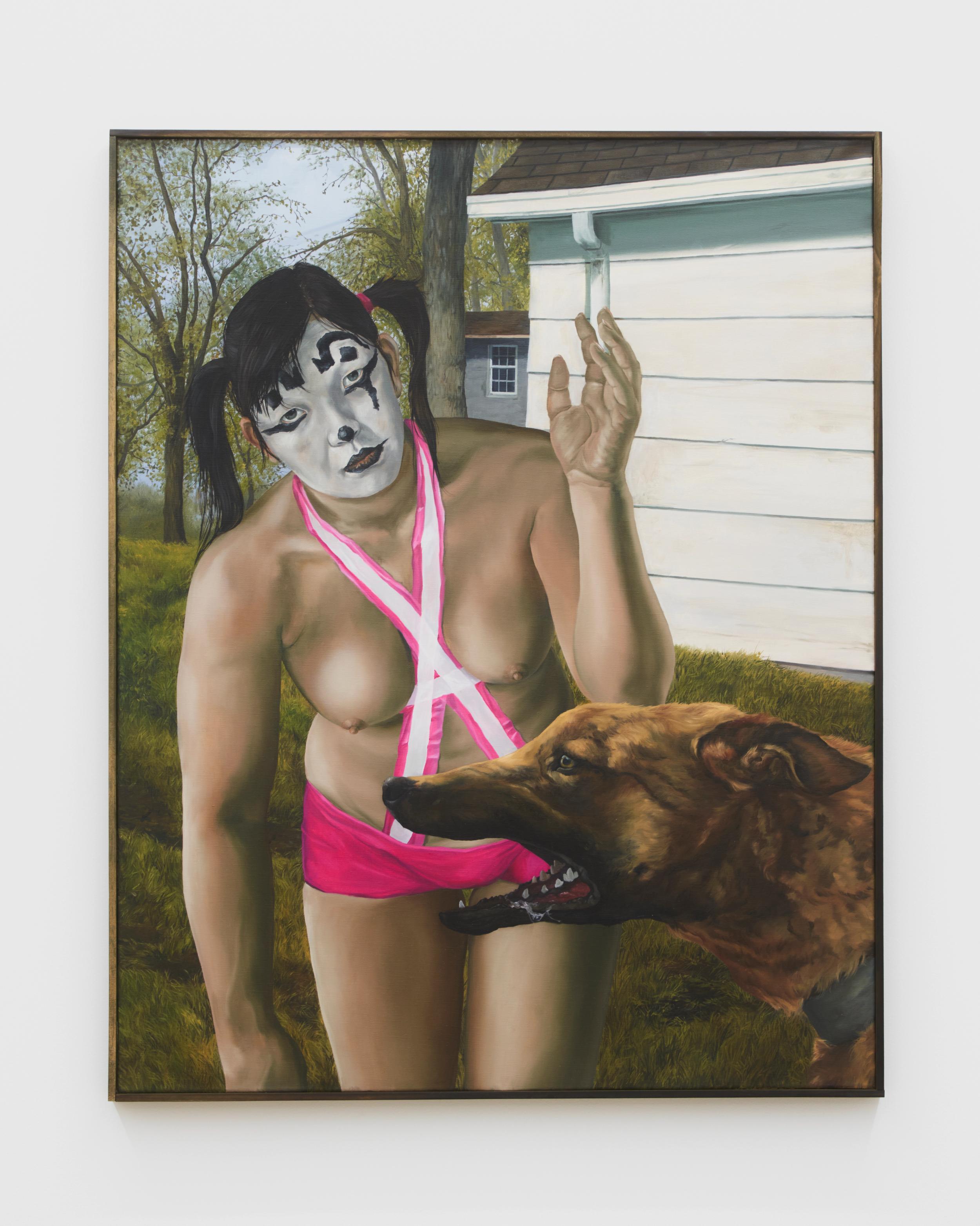 Middleland is an exhibition consisting of a two-channel video and a series of four paintings that, together, explore the nuanced circumstances of East Asian diasporic migration in Middle America, and the resulting social and cultural transformation, diversity, and complexity. The title refers to both Middle America and a positing of one's Chinese-American identity "in the middle" of China and America, something that scholar len Ang describes as a feeling of "in-between-ness." The work does not celebrate this hybridity but rather ambivalently contemplates the violence that such a proximity to whiteness entails.