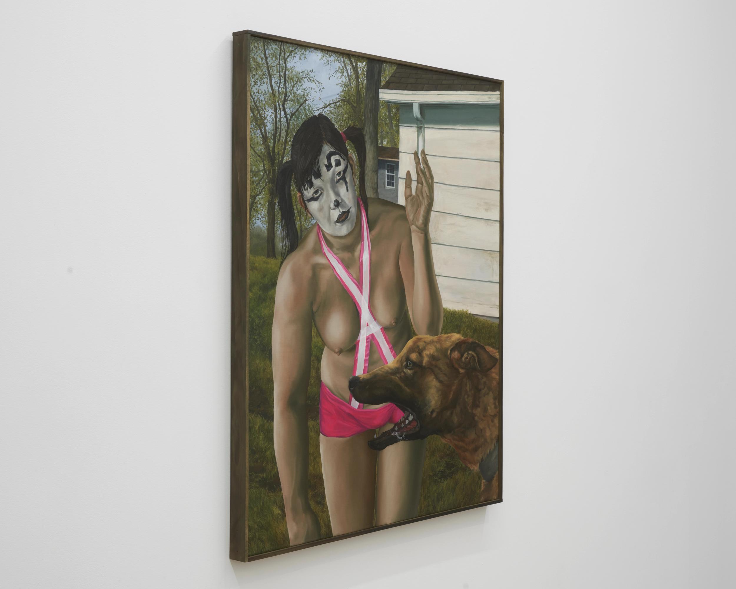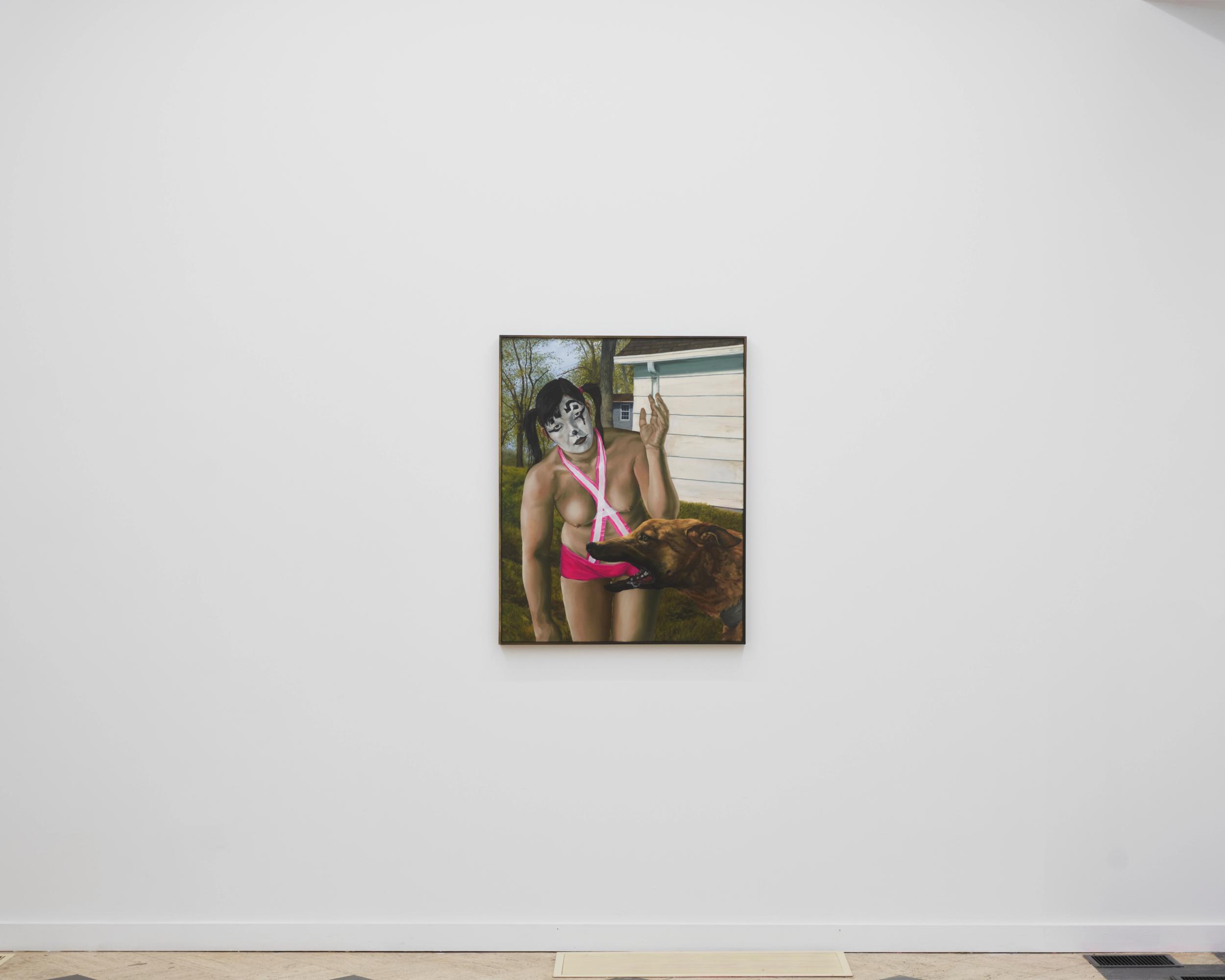 This mix of qualities also helps to achieve a certain statistical American averageness and a sort of complacency that, for decades, has drawn in large immigrant populations to search for an antiquated notion of the American Dream. The tension between Ohio as a destination for multiculturalism and Ohio as an embodiment of the traditional suburban values of the Midwest is where Ba's interest lies the figurative paintings that accompany the video work portray Asian female figures in environments that are drawn from personal memory and are distinctly White, distinctly Midwestern. She is also interested in a critique of multiculturalism as a neoliberal project, most palpable in her video work, '24 Hours in Middleland.' As Jared Sexton writes, " the principle political effects of multiracialism are neither a fundamental challenge to the living legacies of white supremacy... but rather the reinforcement of long standing tenets of antiblackness and the promotion of normative sexuality." Middleland asks the question, how does white normativity undergird what we both celebrate and condemn about diasporic life in middle America?