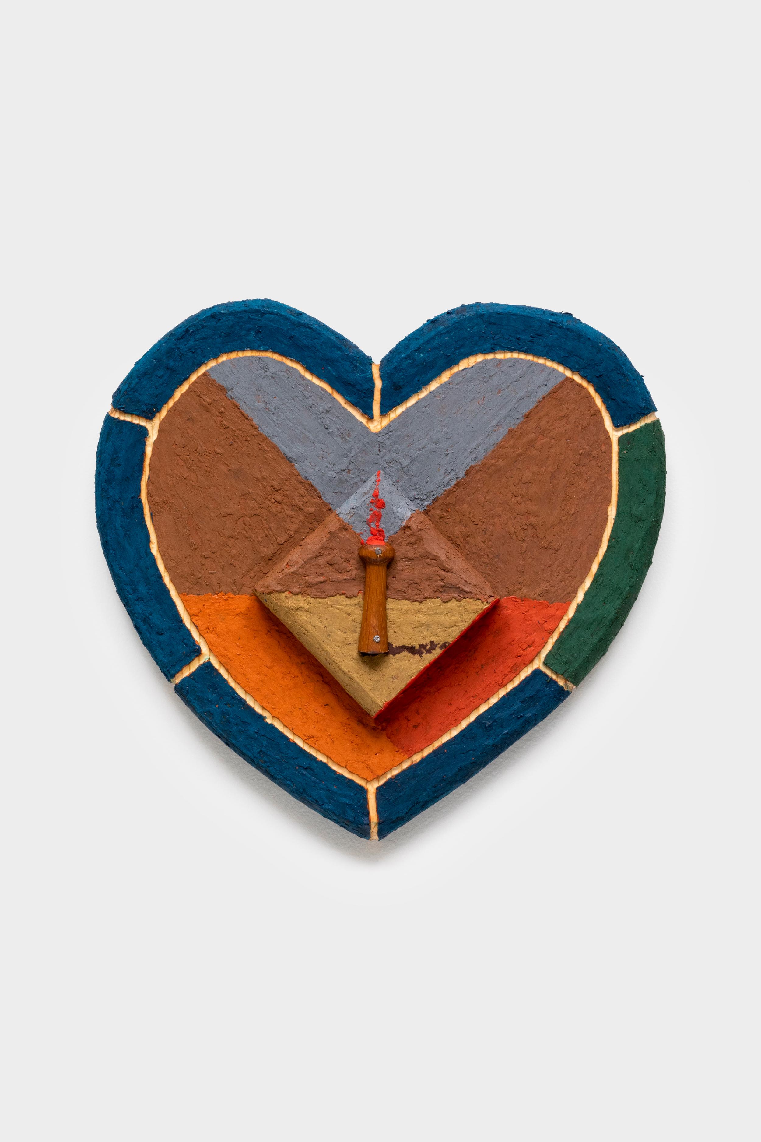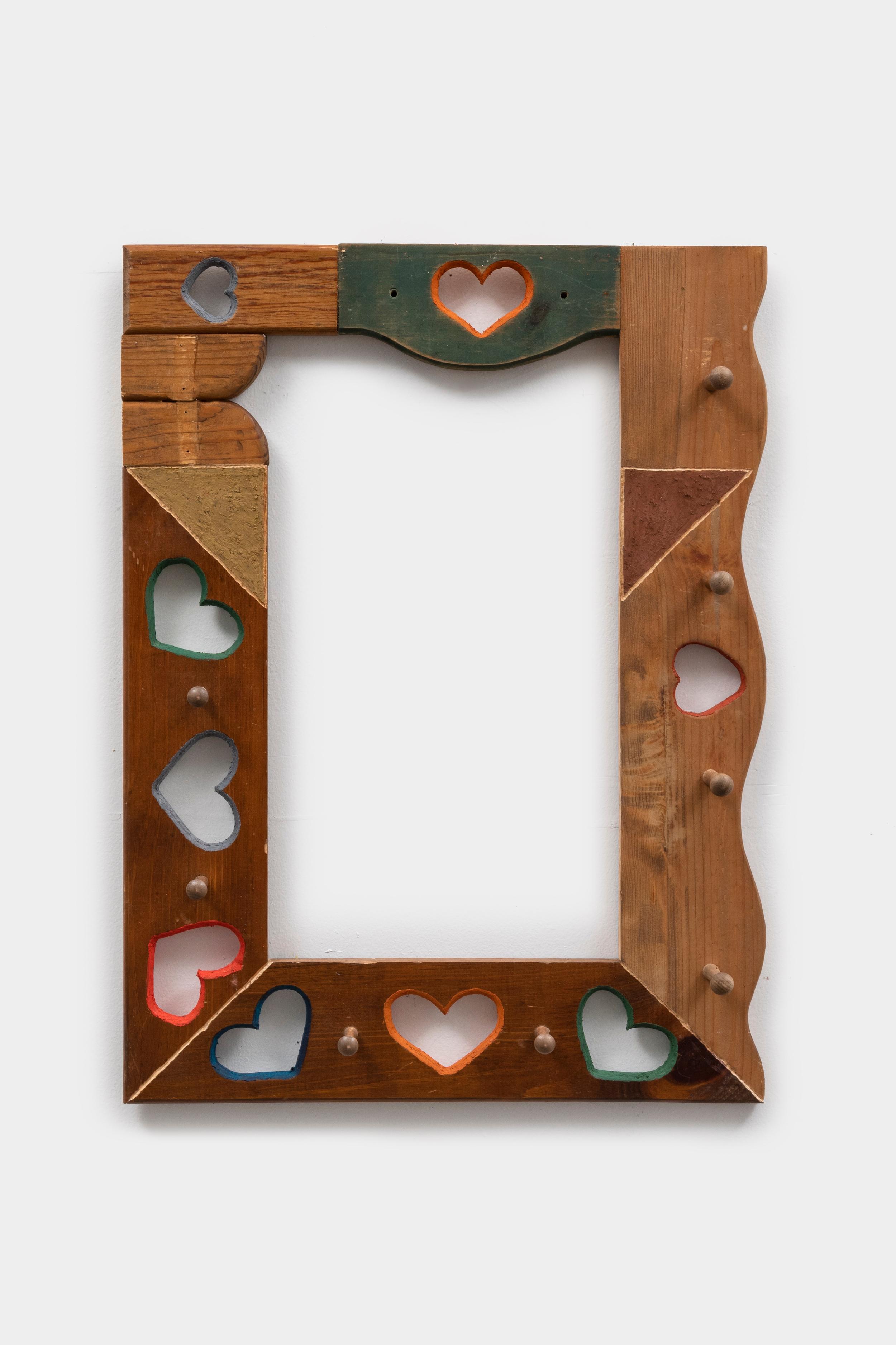 Flattened and recontextualized, his pieces become wall-bound works, existing in a space that tethers itself between outsider art and an instinctual, almost naive approach to making. The materials—crayons, discarded furniture, makeshift assemblages—echo a resourcefulness both genuine and urgent, as if each piece carries the residue of an era where nothing was wasted, only repurposed.