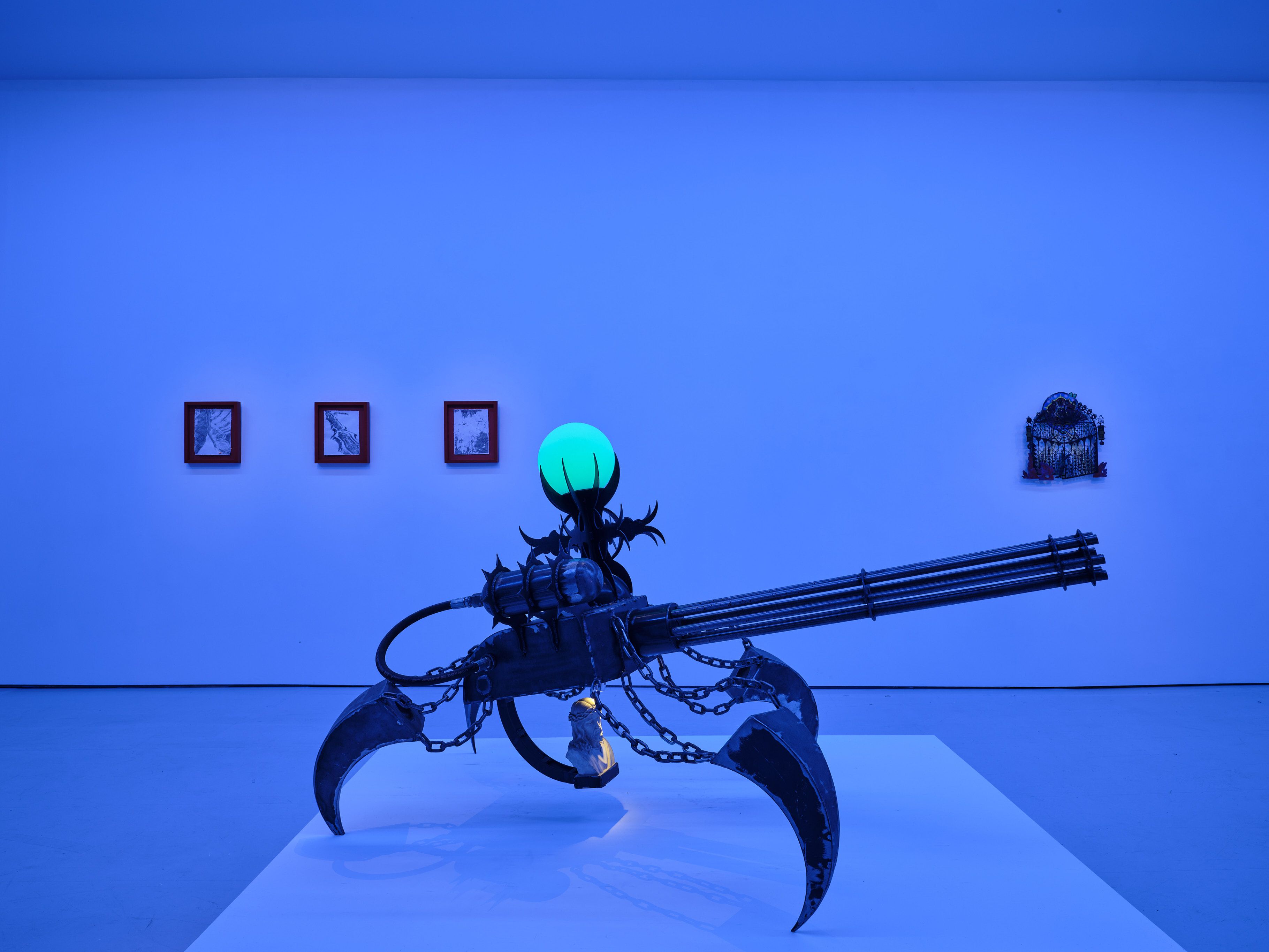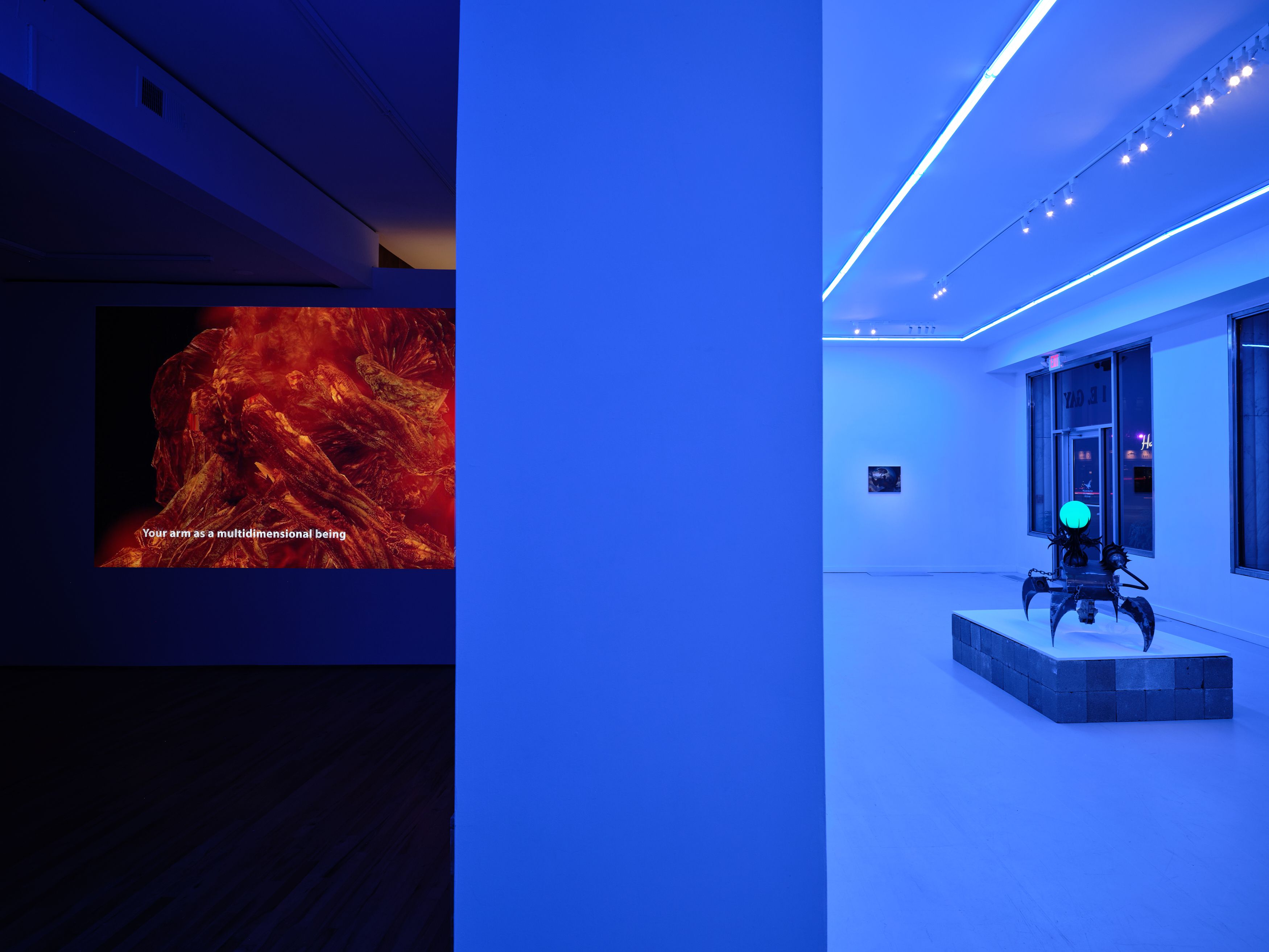 Serrated Latency is a group exhibition bridging sculpture, painting, and moving image into the digital landscape in an effort to trace perceptual edges that are rarely immediate; they emerge across time, space, and experience with variable lag and resolution. The curated works draw from gaming culture, mythmaking, and speculative worlds to reflect on how asymmetric power structures operate with delayed consequence and deferred harm. As digital environments mirror histories of colonial expansion and extraction, fantasy becomes infrastructure and identity becomes terrain. To arrive at No Place is to confront a landscape where progress promises transcendence while simultaneously eroding the boundaries between self, system, and control.