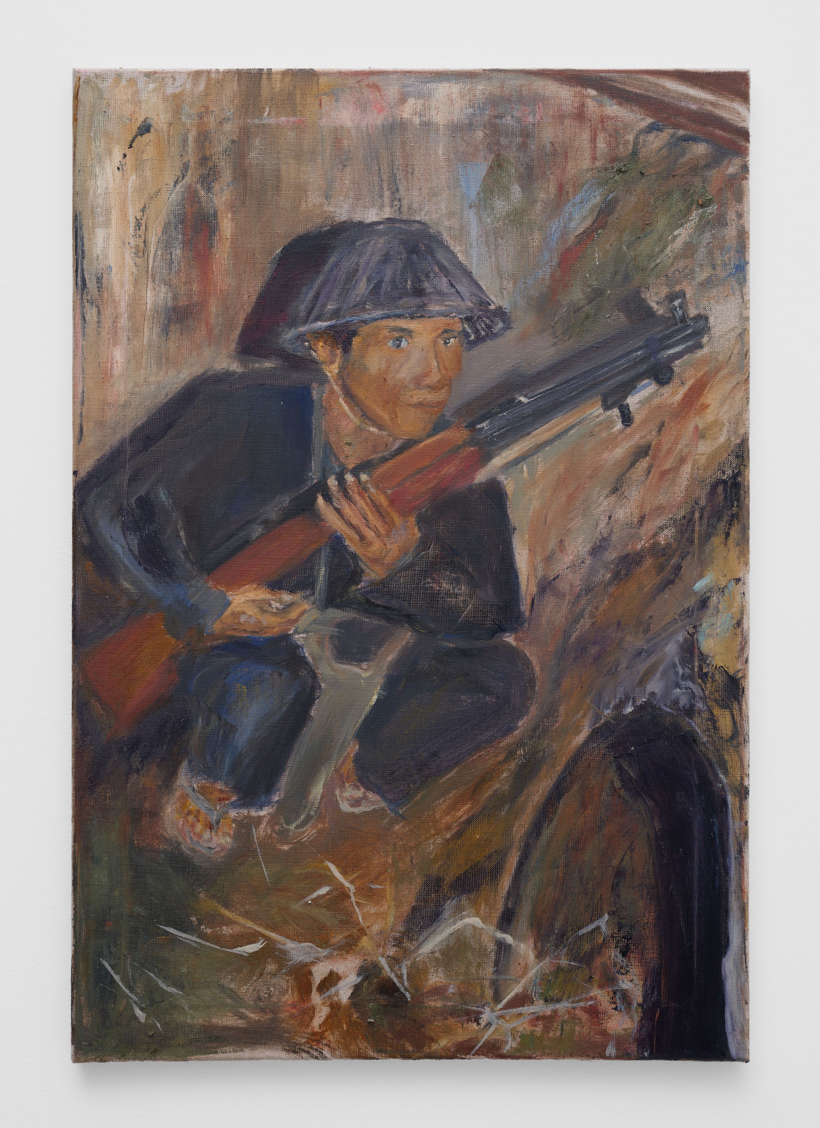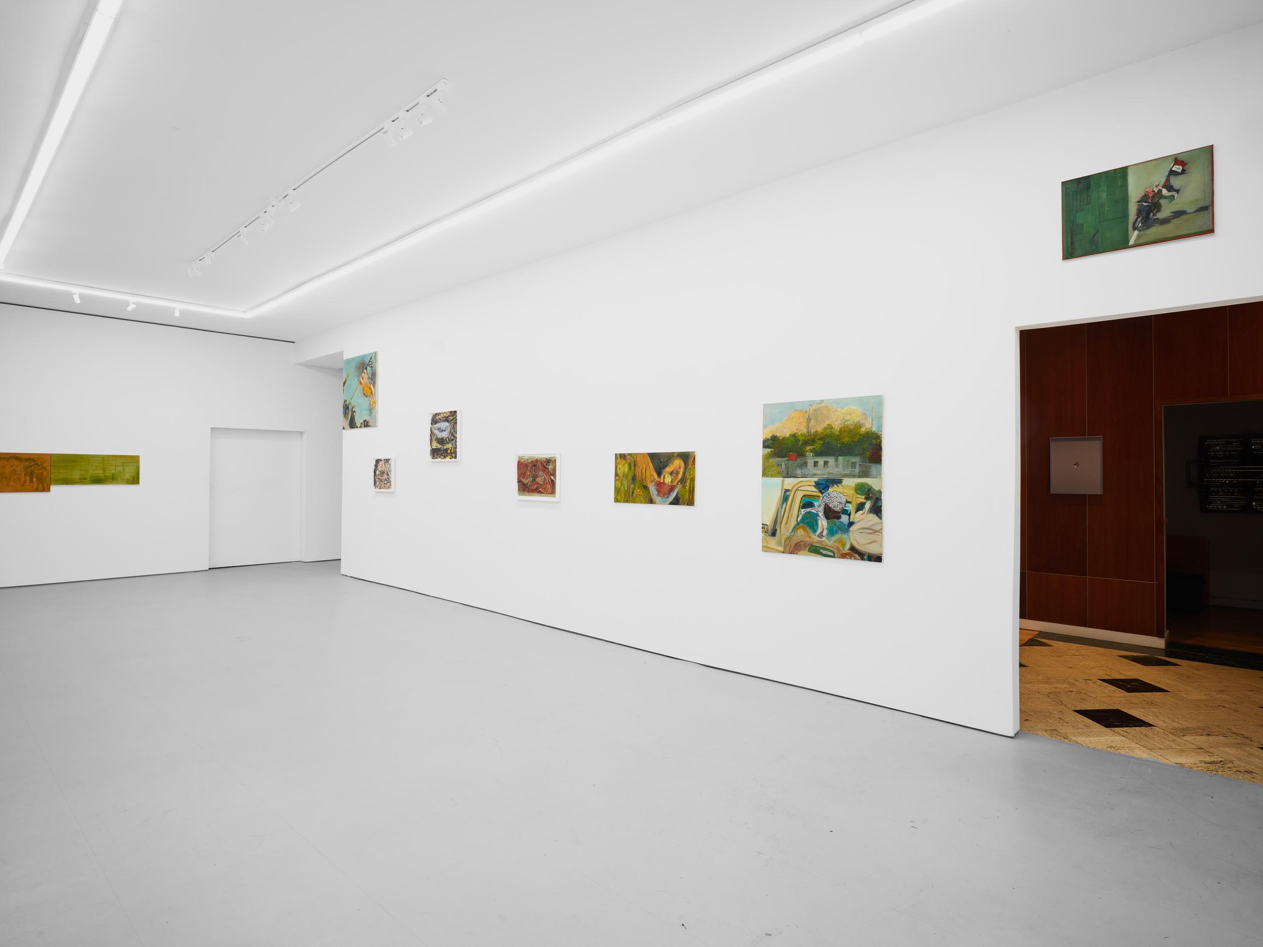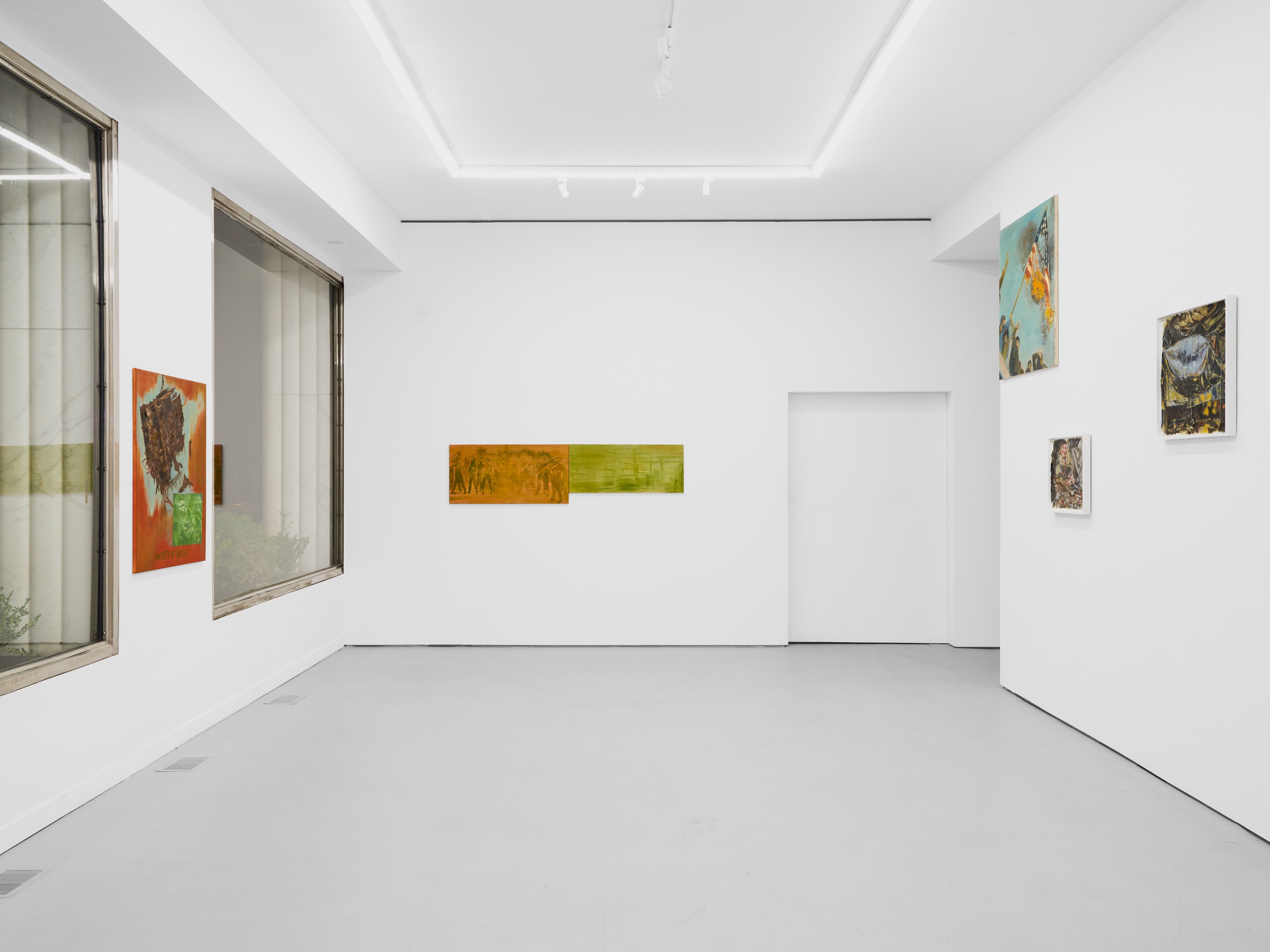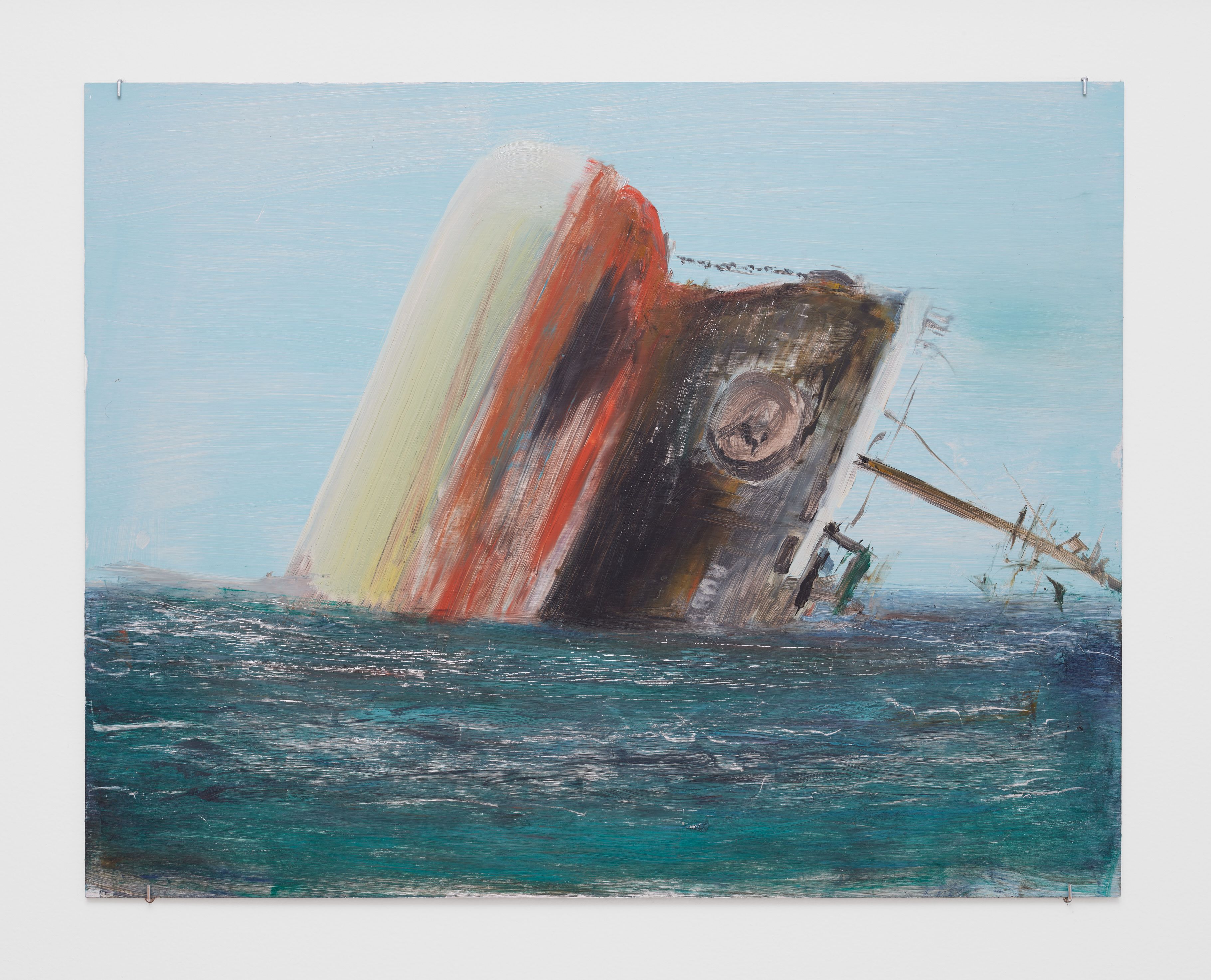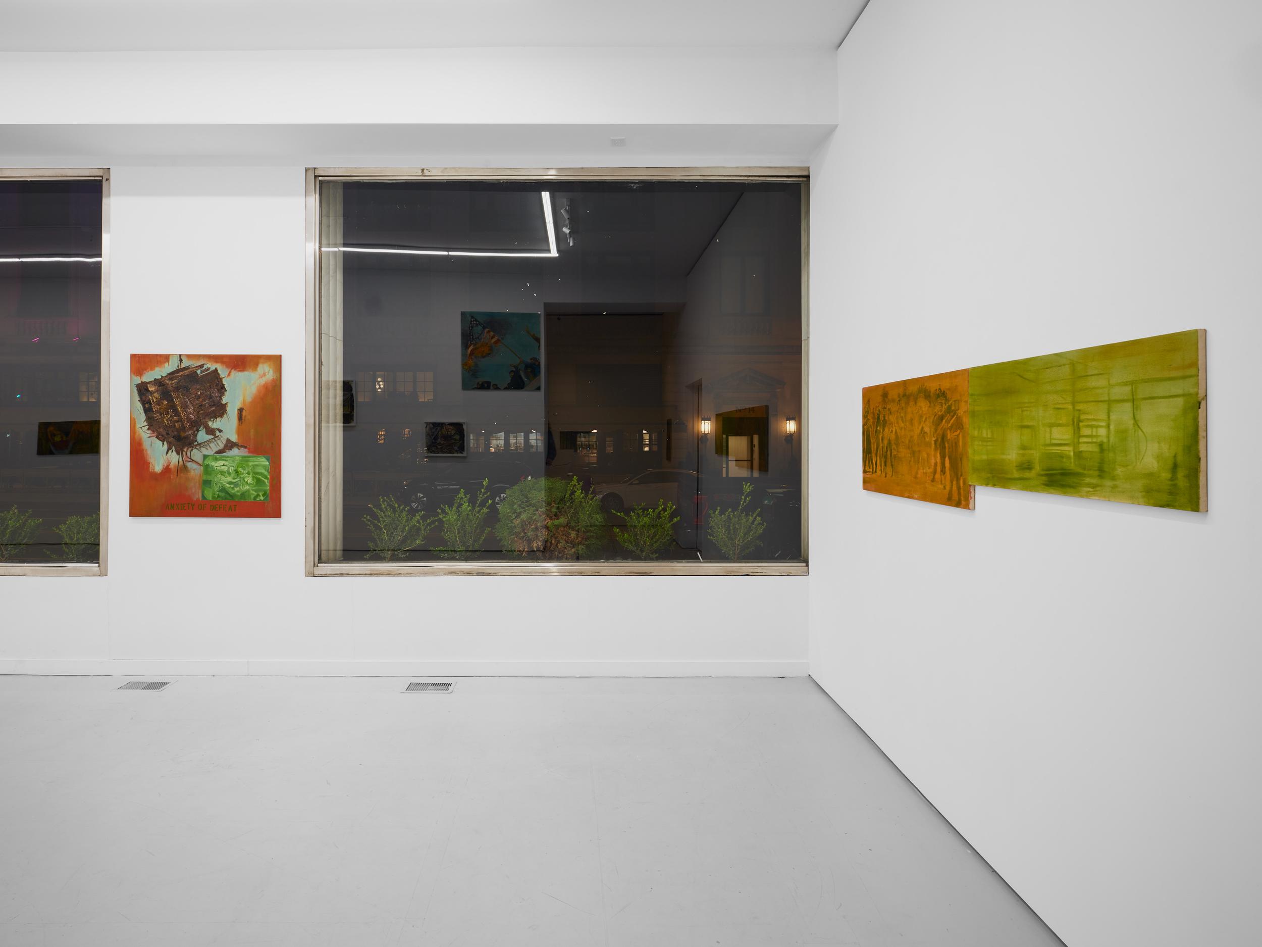 Addanki’s work is a visual essay, offering us an opportunity to read, and Planck extends this mirror into the viscerality of deeper landscape, of how an artistic practice can perhaps teach us a moment of disalienation, and critical engagement. Water soluble oil on wax paper, water soluble oil on wax paper, water soluble oil on wax paper. Cuts and etches. Handworked canvas. The monocrop here has caught fire, and in the drop perceived through the painting, you will see tears in the tent, chaos, and breathing memories of ambient red, a smog that resides in the inner soul of your lungs. In what is addressed as a Desert Study, the rug’s print struggles to shine against the sand which is also red. The door is seen to be open, not to an outside, but to a closeted interior, dried fungal spores leaking through the walls. A slippage into a New York archipelagic blue canopy for the goods from the Atlantic, ikea : fog : end points in the oceanic highway : an east after the west : floody gaze in the air. Between the bridge over the beautiful sky and the grass that grows from the sand, it is difficult to say much else. Theory has been painted. Persistence, stresses for a pause, and as Fred Moten once said in a poetry reading, “I don’t want to talk about those motherfuckers. I just need you to know that this shit is killing you too.” Did you know that we could play jazz on a shallow tide day right next to that grass under the bridge. What I describe as the grass might just be the twigs left behind, but sometimes the gift of the painting is to not know the answer. The blue breaks the measurement of the frame.
