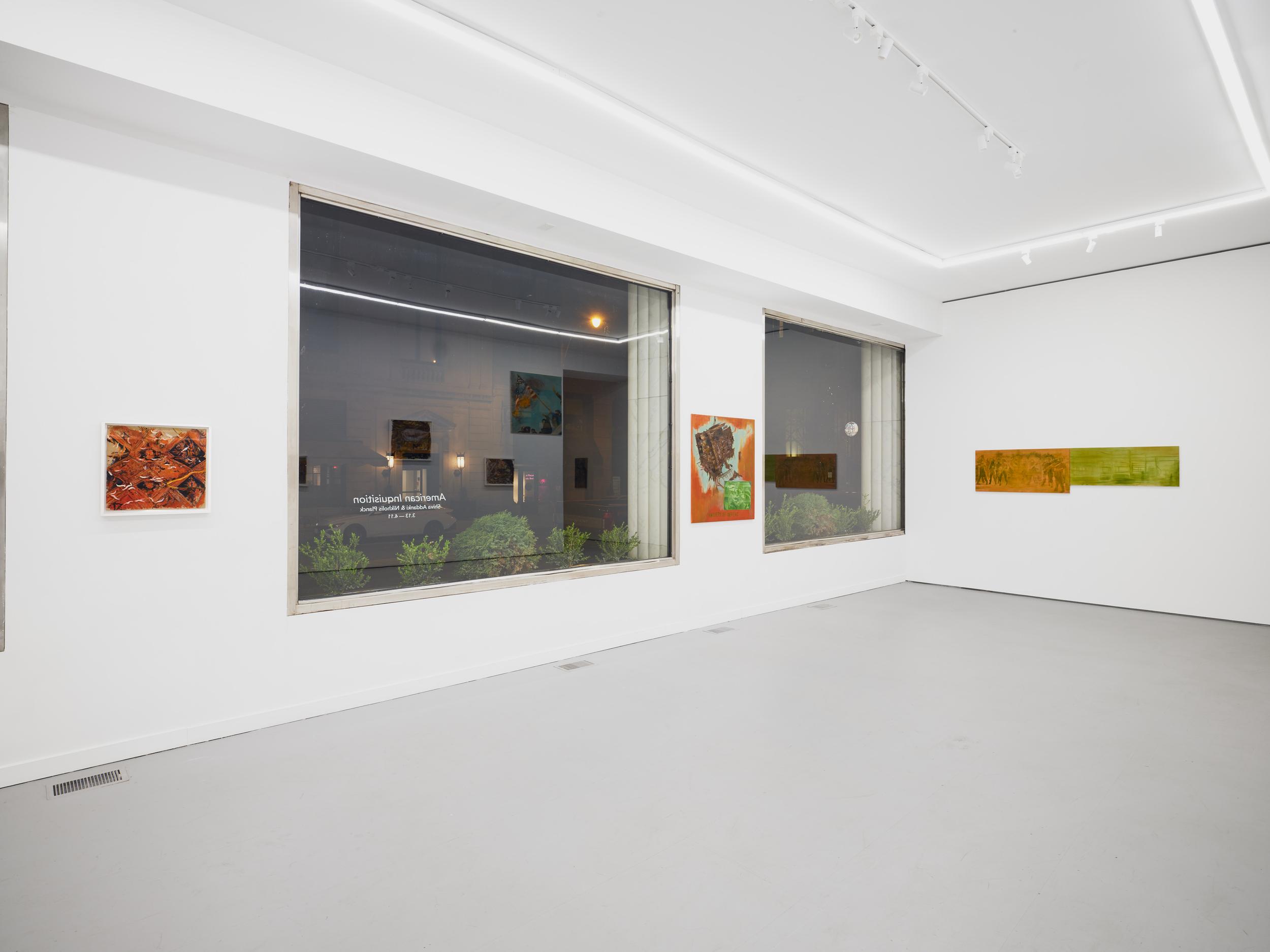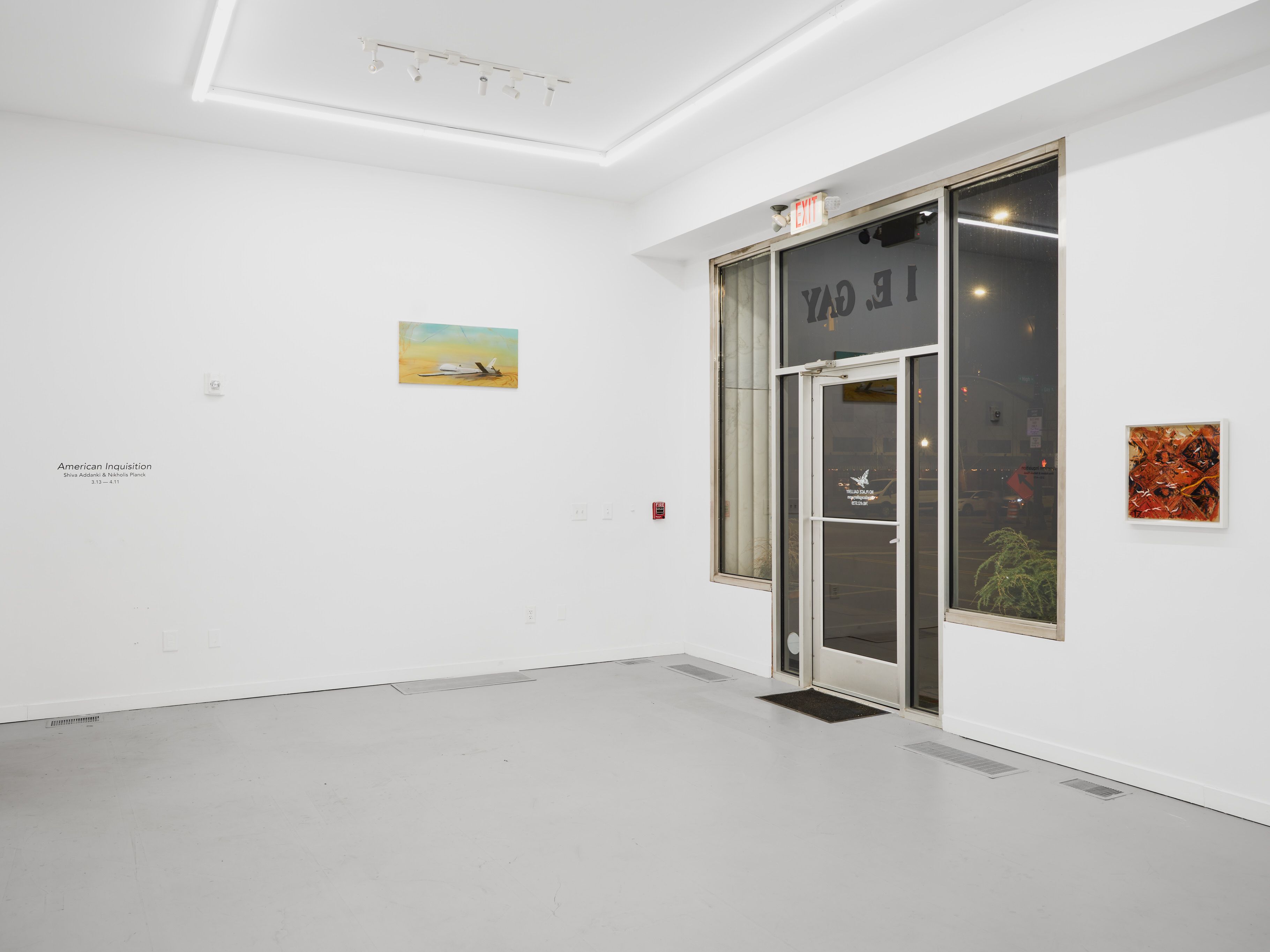 Shiva Addanki and Nikholis Planck in this collaborative exhibition ‘American Inquisition,’ at No Place bring this scene, amidst the paradox, this quiet and searing airing, as geographies and temporalities fold into an ecology of capture, extraction and resistance. Land in Addanki and Planck’s investigation offers a blurring of what they refer to as the settler interior and exterior, unsettling the blue that canopies the gaze, the frame, the flag, and its meandering assumption of place. In the canvas of their work, presented as frames, within measurement, etched, drawn, painted, hand worked in response to the condition that is memory, the frames of what late historian Mike Davis theorised as disaster ecologies, ecologies of fear, geographies of the constant encounter. Here, the image is operationalised for a range of agential interests. The state, its corporations, the materials and regimes it seeks, often merely contrasted by the Euro-American reading of the alleged resilient, constantly countering, other, which appears in the historical development of settler colonial image making, from its foreign correspondents to its painters of a landscape of self. An American Inquisition here read normatively is a state of critique but given the opportunity to marble, is a state of paralysis, at-least personally - a pause for the ledger, a pause for this sugar, to let that blue from the ocean and sky do the work in unmaking containers.