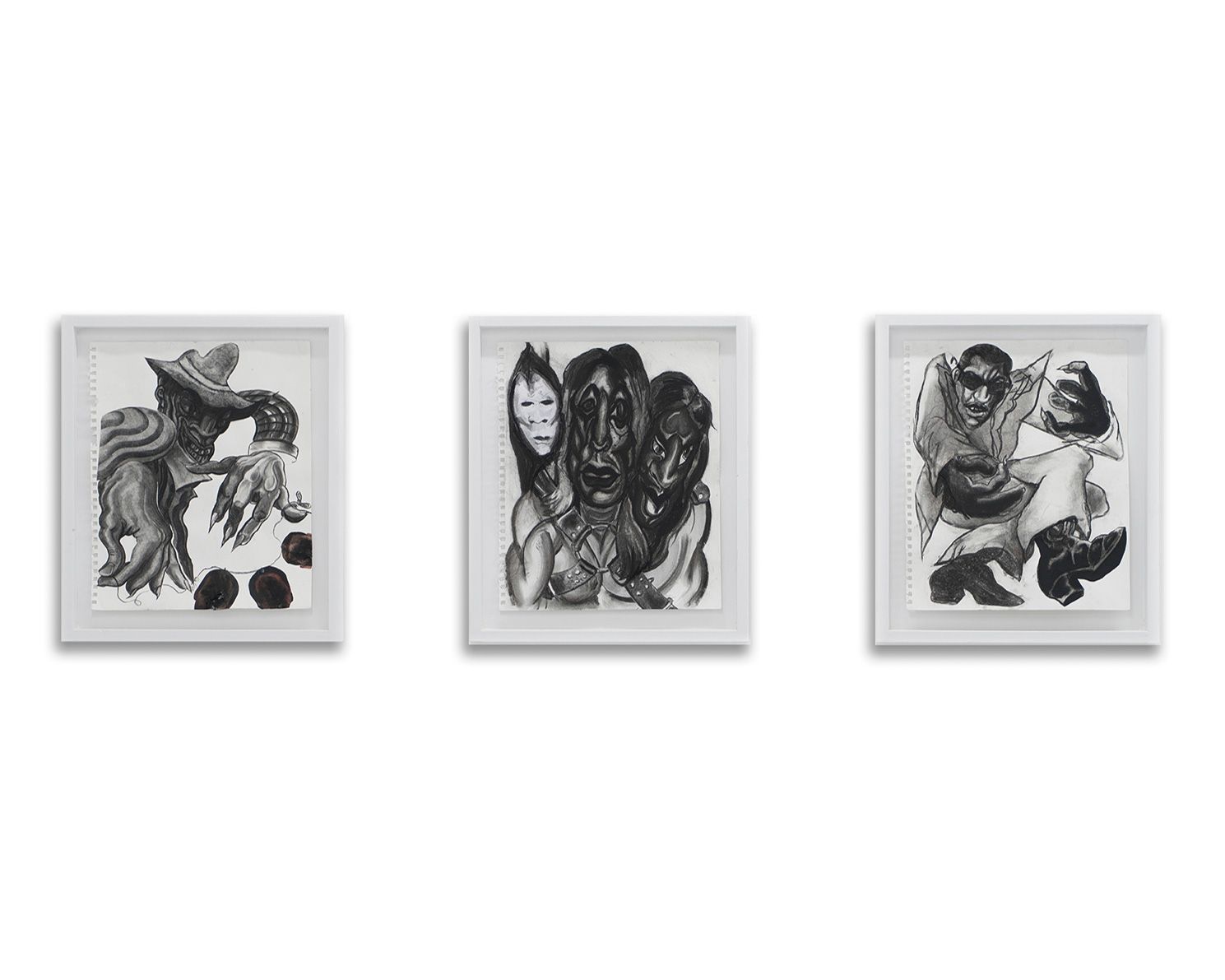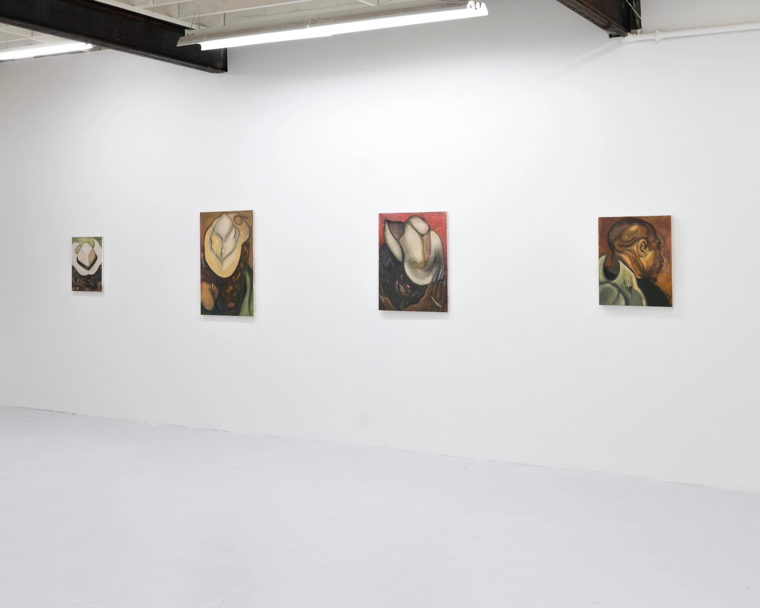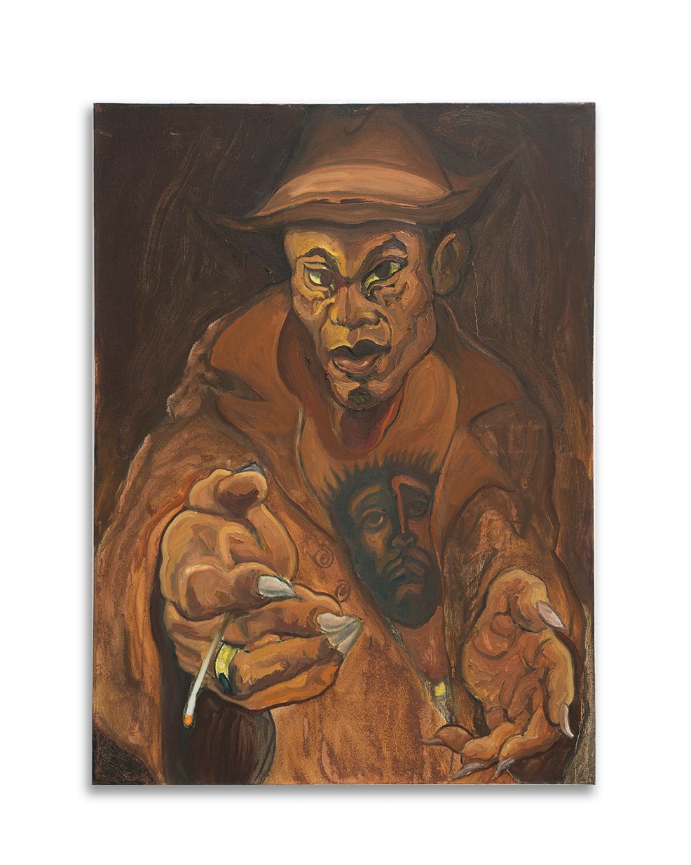 PURE HELL grows from a place of frustration and desire. Drawing influence from the growls ofRaw Power and the howls ofSoul Brother No. 1, spirited portraits of Street-Stompers twist N’ shout looking for a release. InsidePURE HELL the figures are off the dog collar with a bone to pick. Flesh transforms into masks adorned with war paint and threads are razor sharp. The Night-Prowlers are dressed to kill. Paint runs like an out-of-tune solo; a last-ditch frenzy caked on like cheap make-up. Brushstrokes animate the monkey on the back and record the unscratchable itch. UnderneathPURE HELLis an urge to unleash. The house has burned down and what’s lying beneath the ash is waiting around the corner.