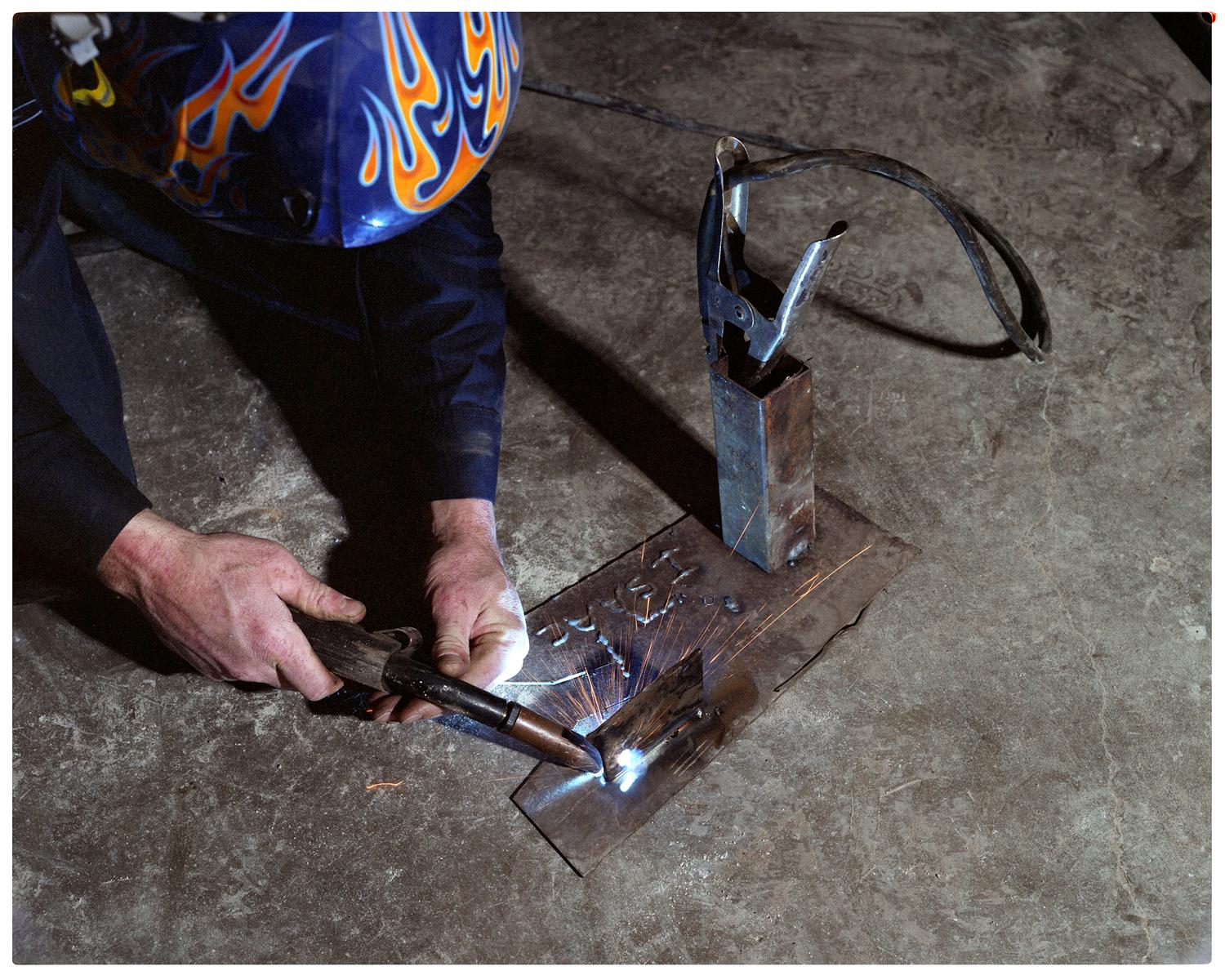 The Beach Boys' 1988 pop song Kokomo conjures an idyllic, fictional utopia – an impossible remote paradise centered around love and leisure – through uncomplicated, catchy, romanticism. The real Kokomo, Indiana (the hometown of Ryan White) exists in stark contrast, situated on the fringe of the Rust Belt at the center of the Midwest, far removed from tropical beaches and steel drum bands. The dichotomy between paradisal fantasy and industrial reality forms the foundation of Ian Lewandowski's current exhibition at No Place Gallery, Reflector, in an emphatic contextualization of queer identity, masculinity, and blue-collar resilience from the Heartland.