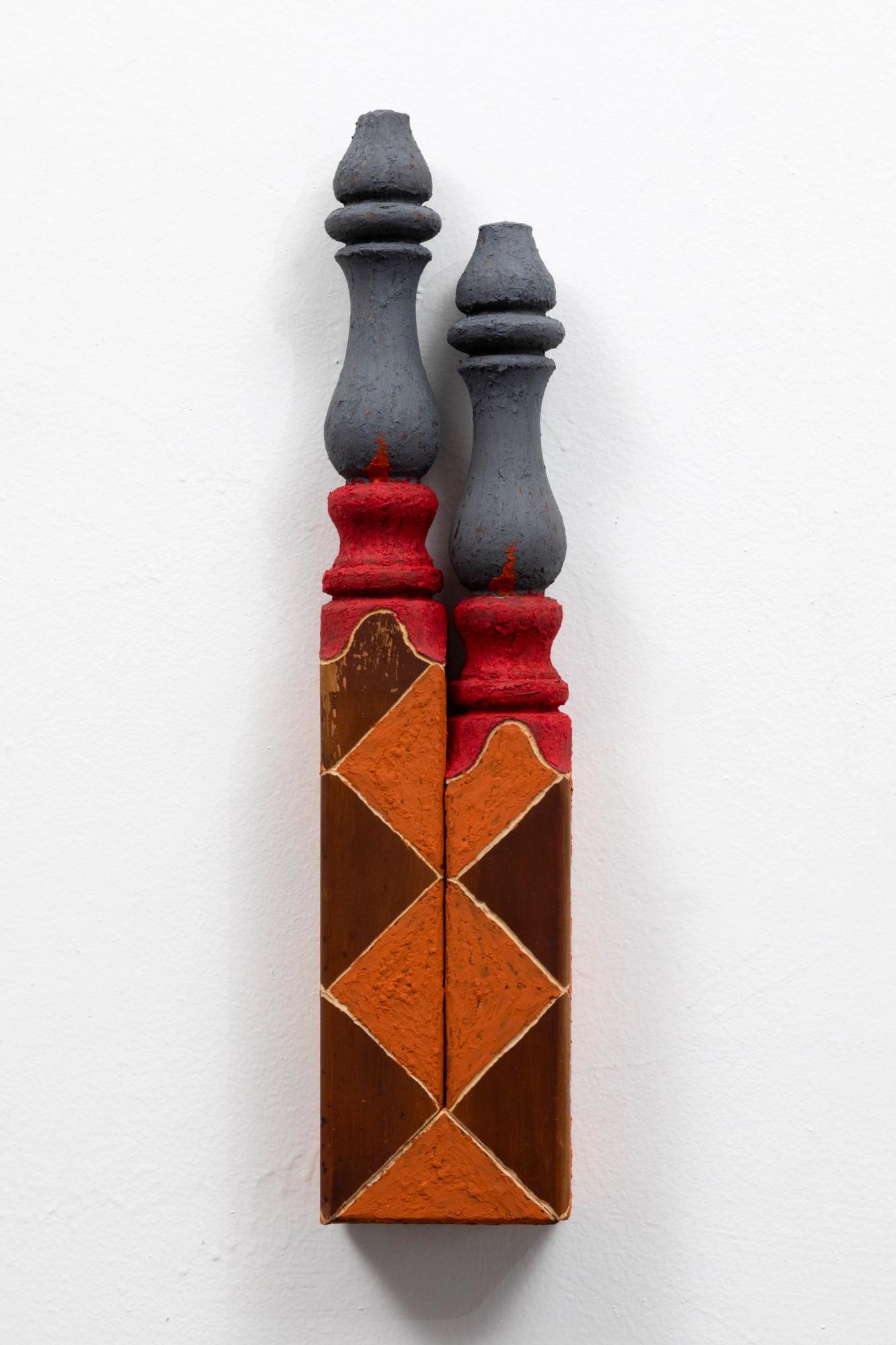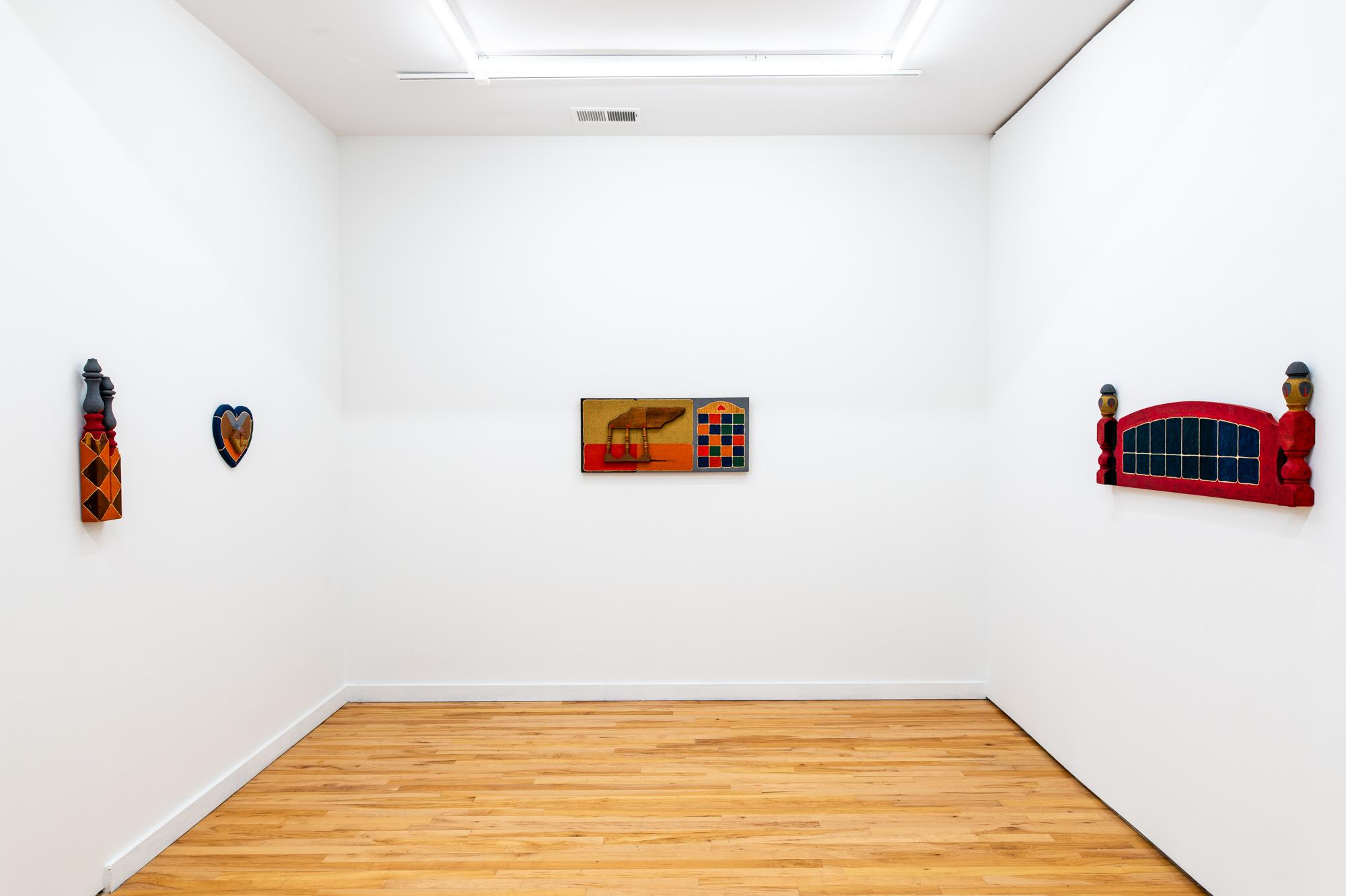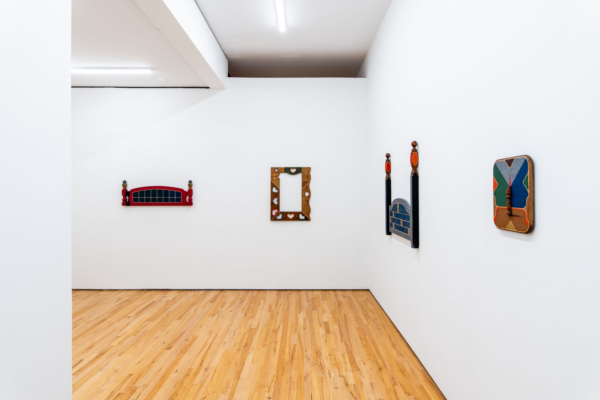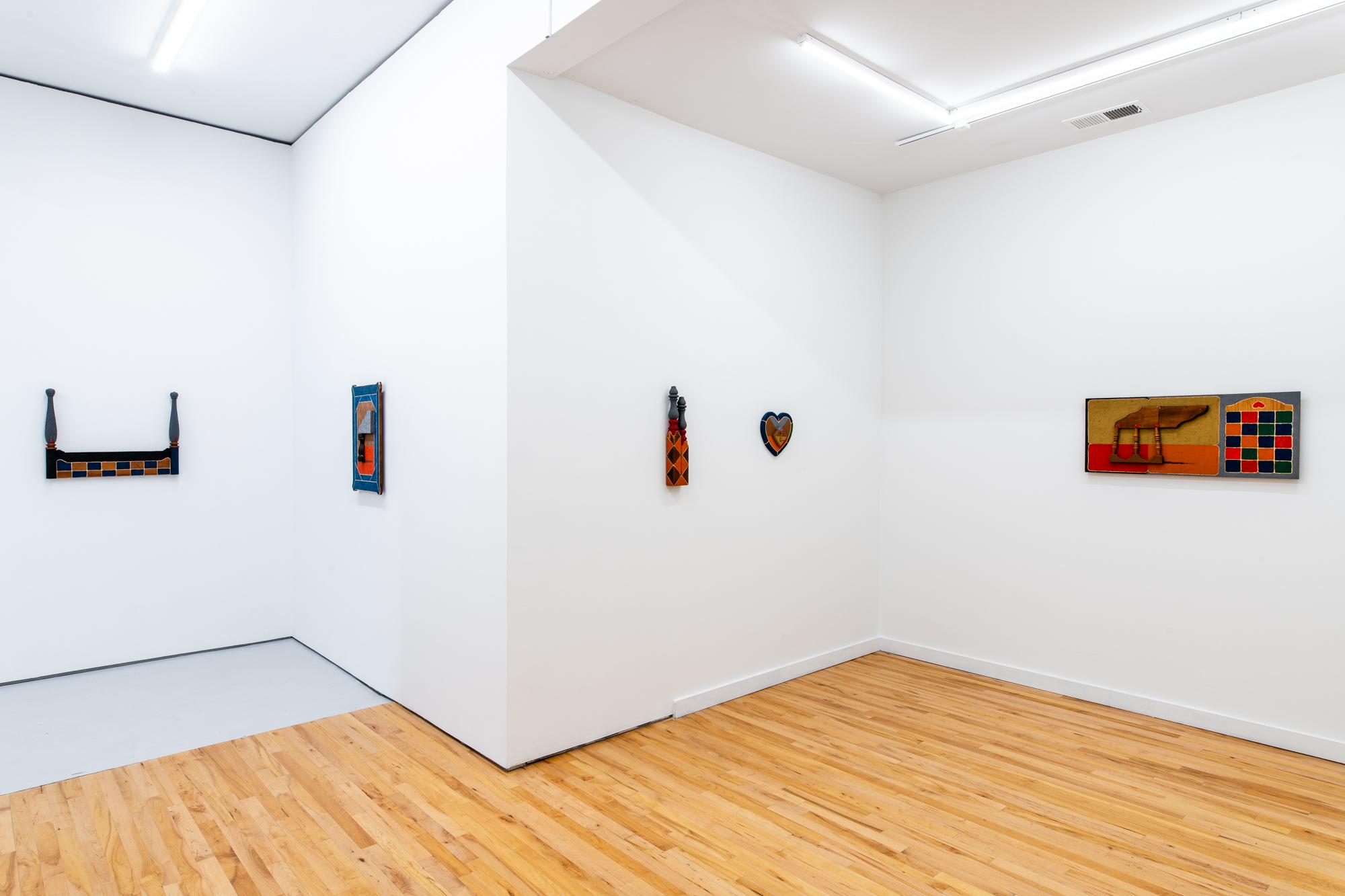 Flattened and recontextualized, his pieces become wall-bound works, existing in a space that tethers itself between outsider art and an instinctual, almost naive approach to making. The materials—crayons, discarded furniture, makeshift assemblages—echo a resourcefulness both genuine and urgent, as if each piece carries the residue of an era where nothing was wasted, only repurposed.