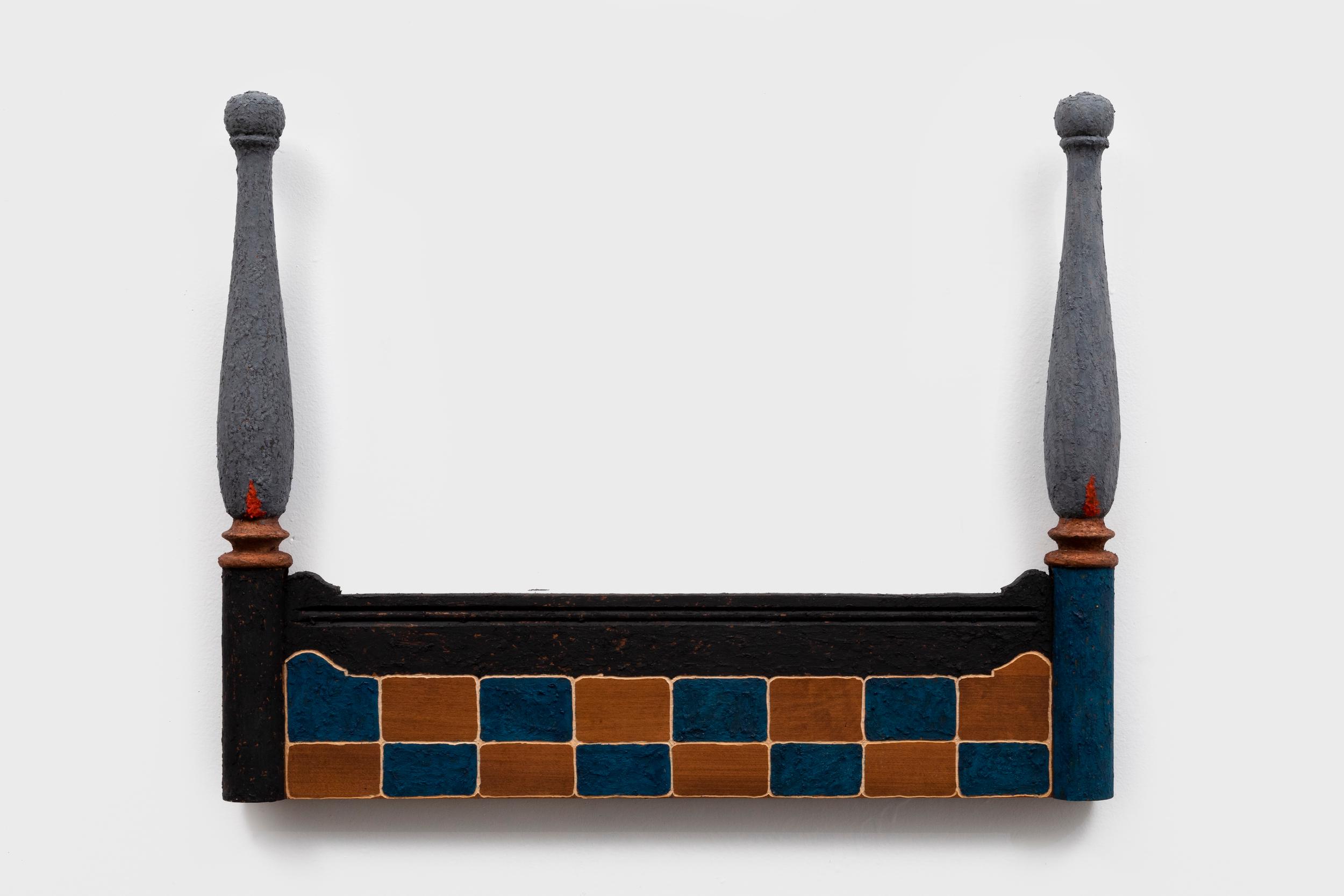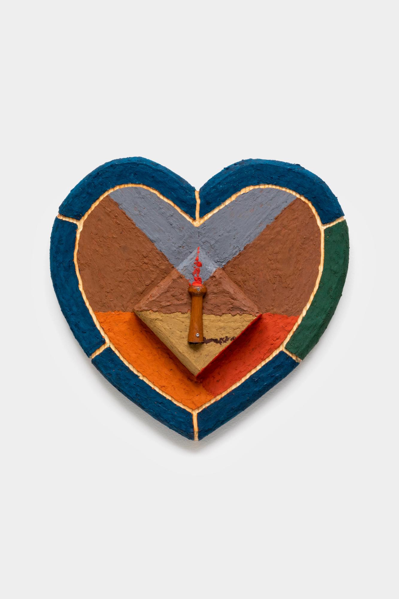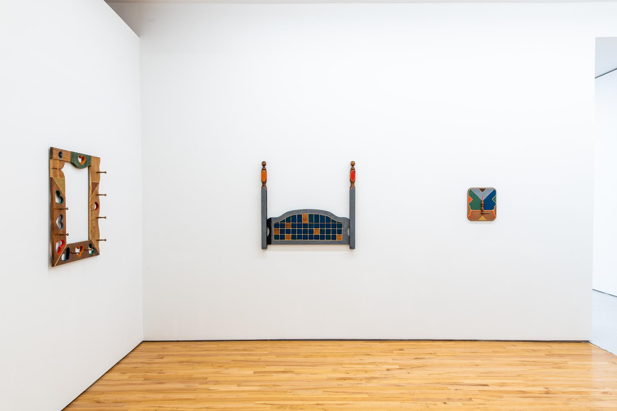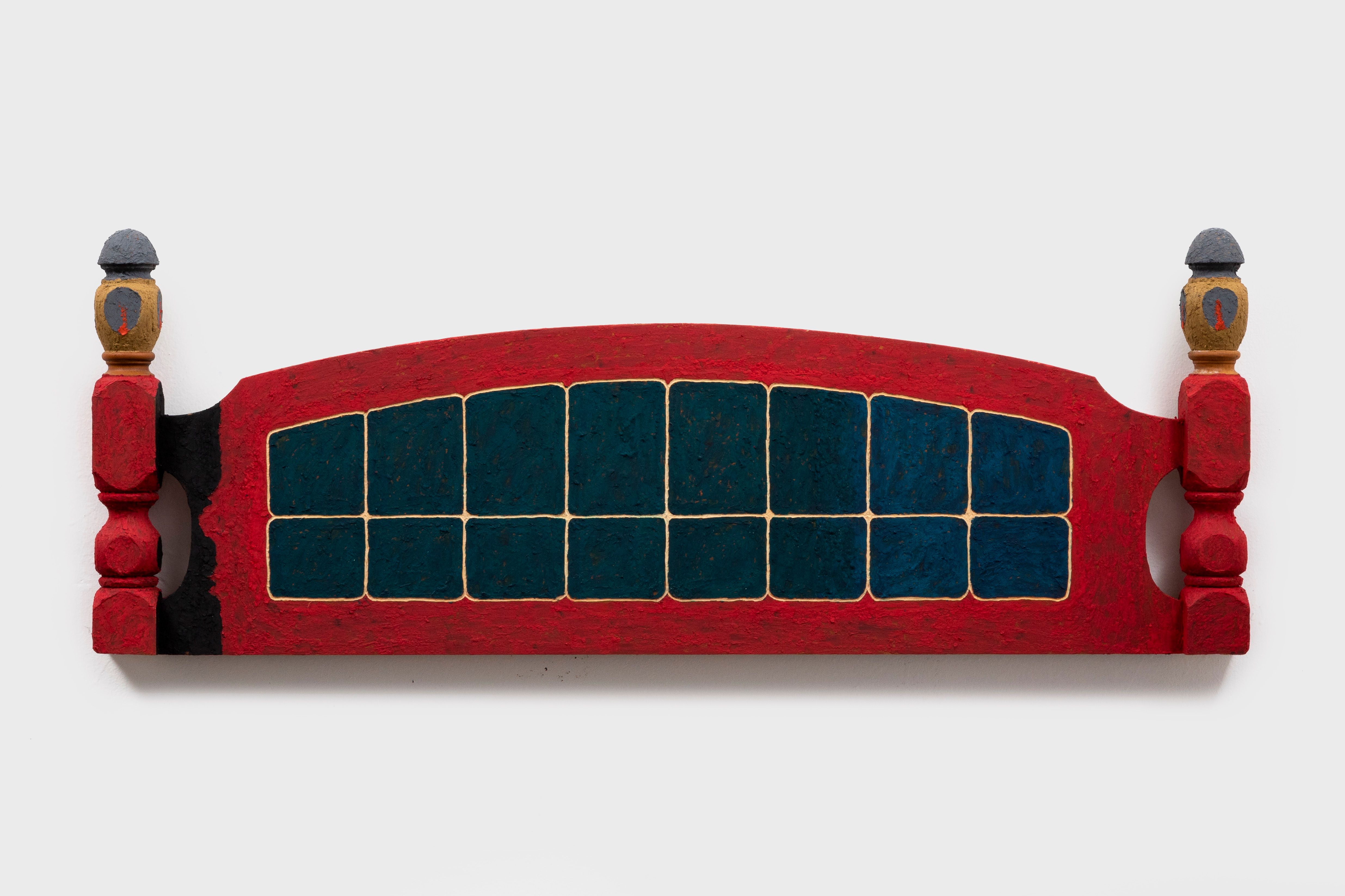Flattened and recontextualized, his pieces become wall-bound works, existing in a space that tethers itself between outsider art and an instinctual, almost naive approach to making. The materials—crayons, discarded furniture, makeshift assemblages—echo a resourcefulness both genuine and urgent, as if each piece carries the residue of an era where nothing was wasted, only repurposed.
