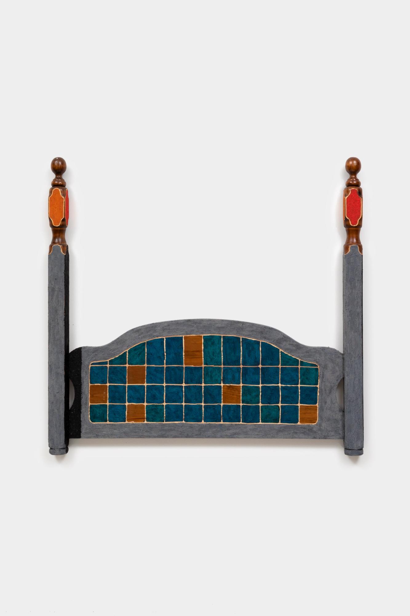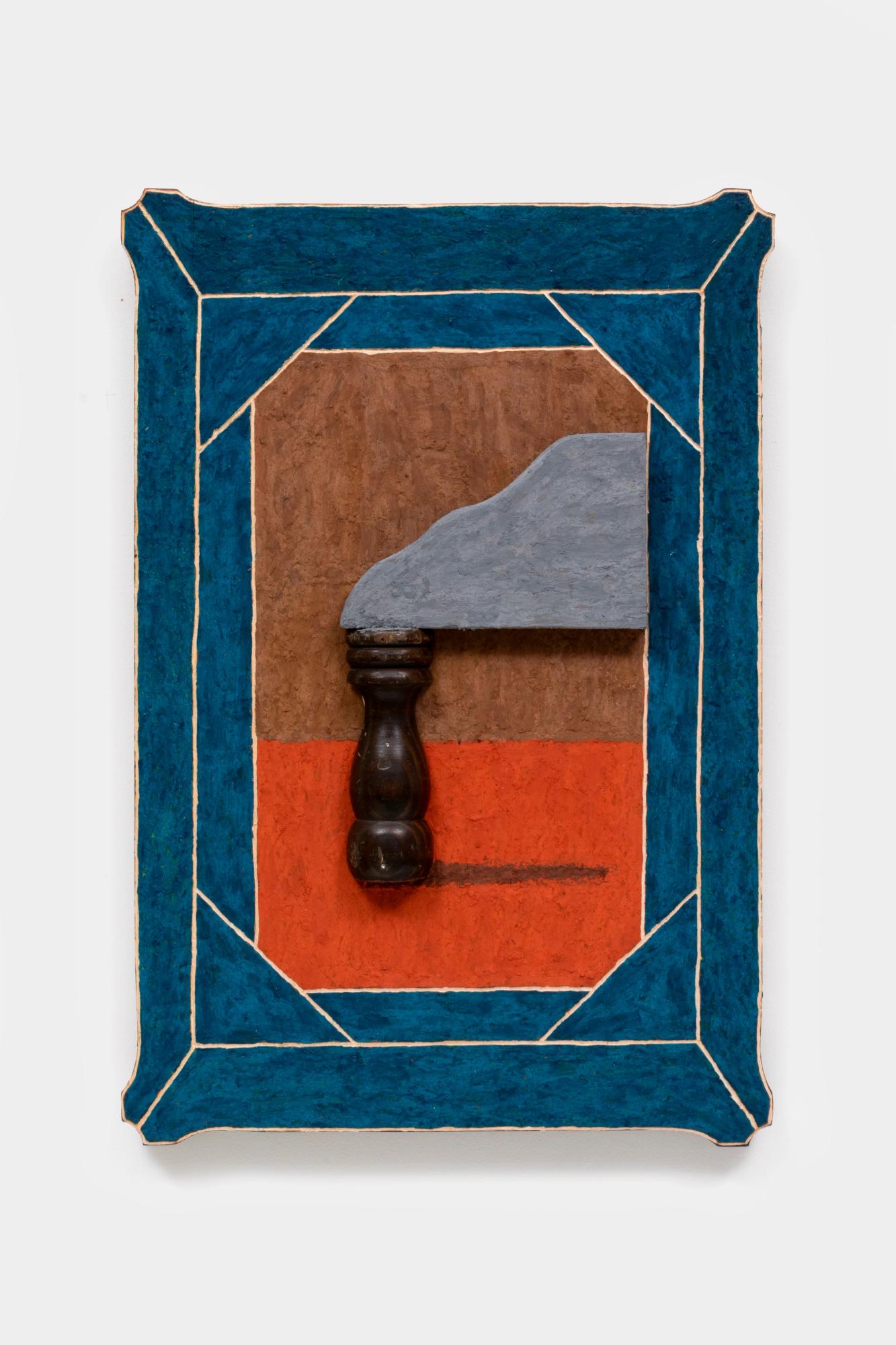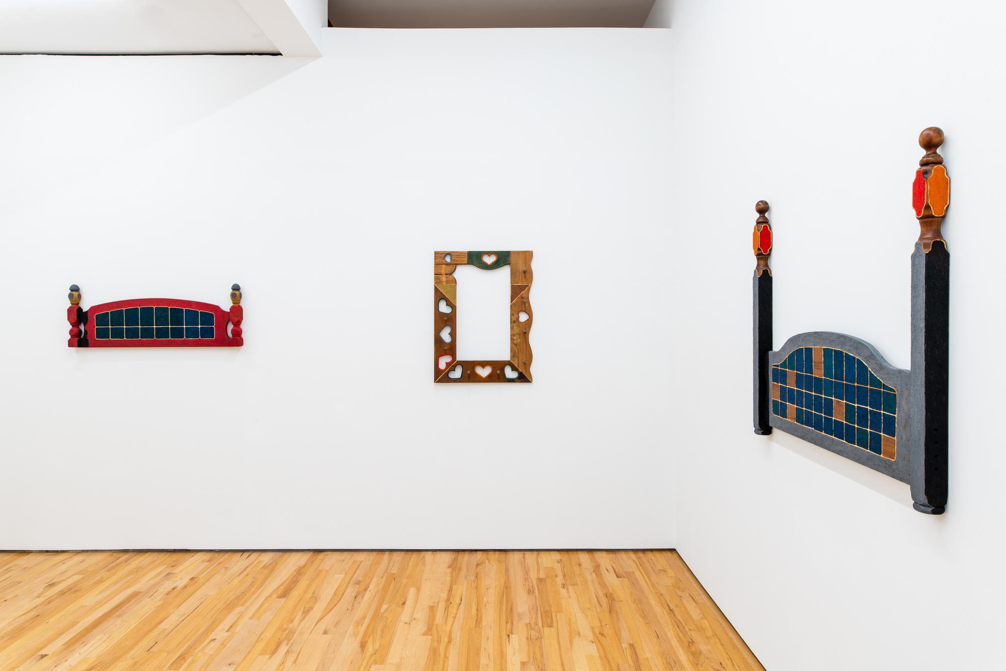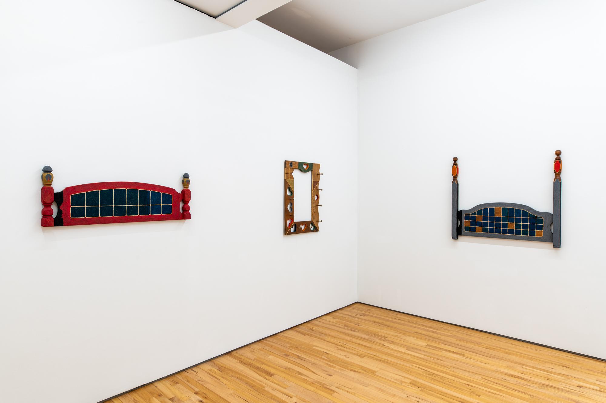 Flattened and recontextualized, his pieces become wall-bound works, existing in a space that tethers itself between outsider art and an instinctual, almost naive approach to making. The materials—crayons, discarded furniture, makeshift assemblages—echo a resourcefulness both genuine and urgent, as if each piece carries the residue of an era where nothing was wasted, only repurposed.