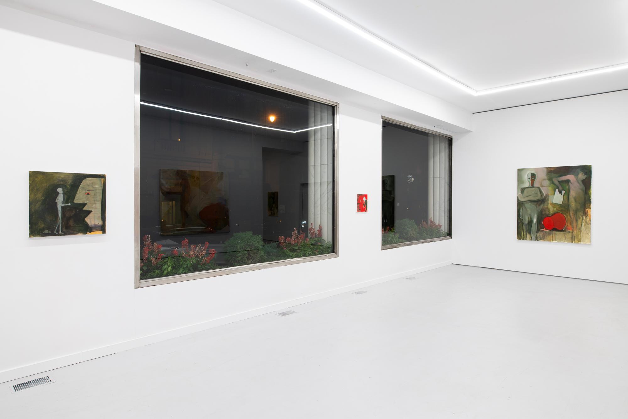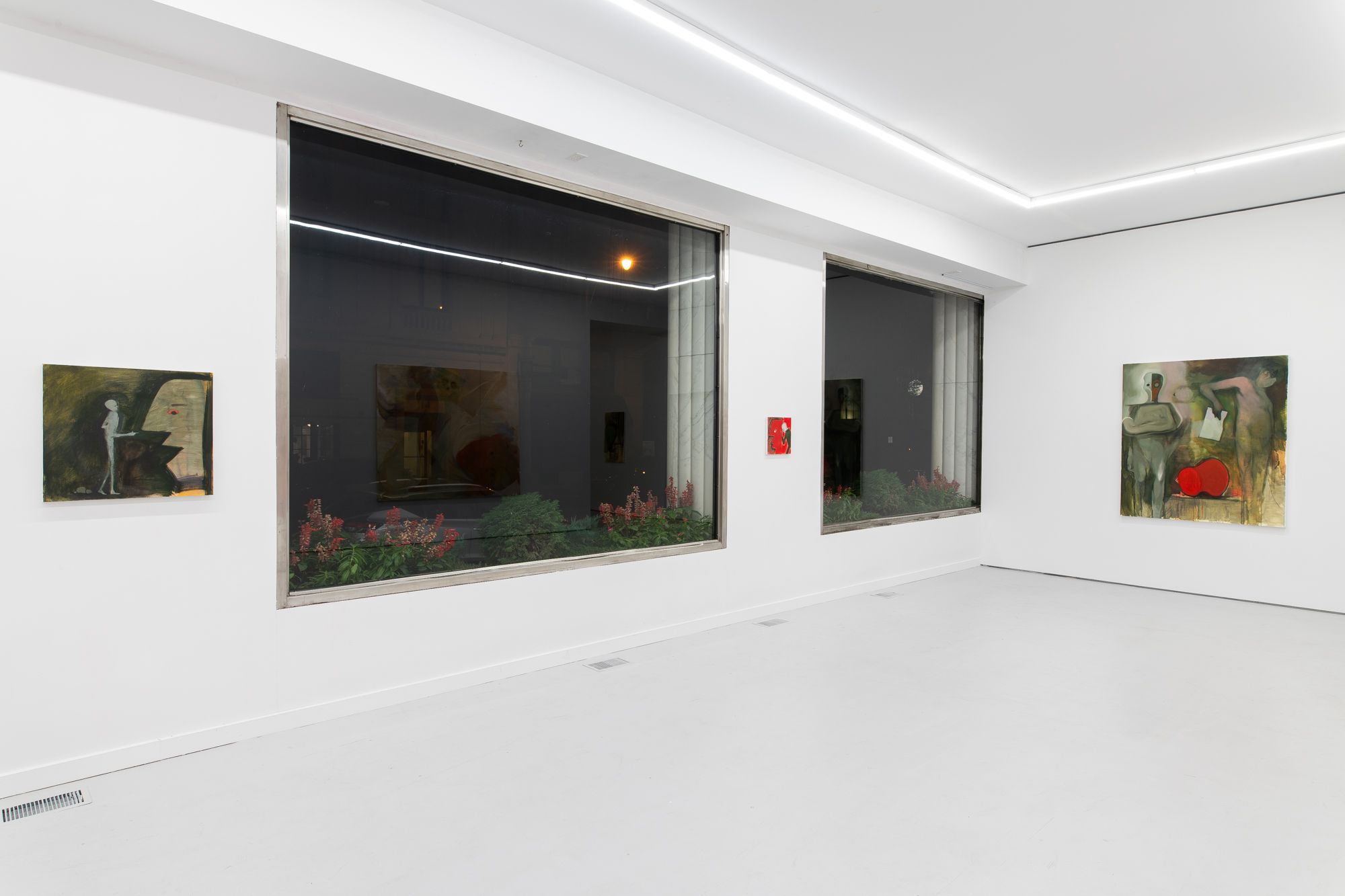 As a painter, Hoza freely flows through the streams of historical painting, drawing his language from the lexicon of twentieth-century representational painting. Through finely tuned colors and sweeping passages of alluringly foggy light, Hoza carves his own idol to domesticated existentialism. Pointing to the past through sly compositional references to Dickenson, Vallotton, and Vuillard, Hoza flattens painting’s canonical timeline, underscoring the persistence of life’s turmoils, fears, and doubts. Within his practice, the artist lives in the intricately orchestrated conveyance of these relationships and ideas through his inherited formalism. Shapes and colors are measured and remeasured through diligent contemplations of paint, the culmination of which subverts the whole and offers the viewer a prevailing sense of grief and guilt.